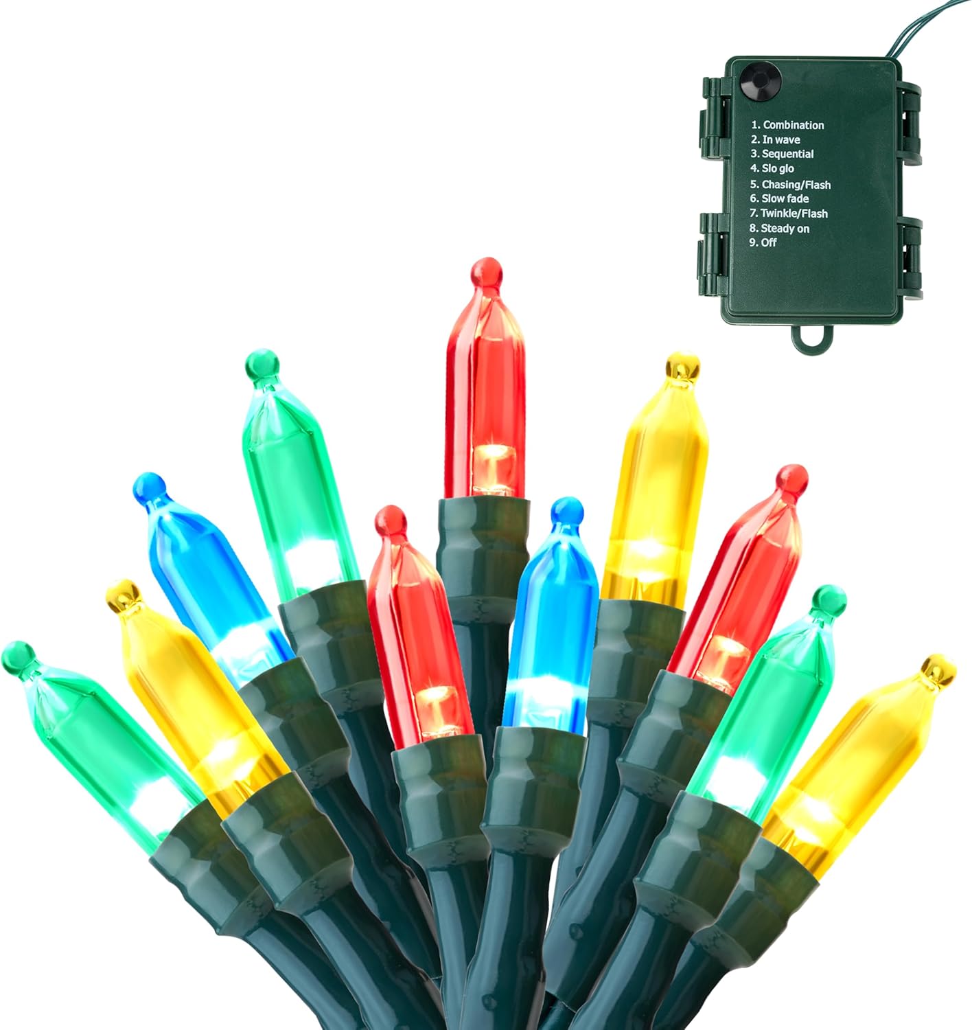 Joiedomi LED Christmas String Lights,50 Count 16.3FT Battery Operated Christmas Tree Fairy Lights with 8 Modes,Multifunction Green Wire for Xmas Decor Party Holiday House,Multicolor