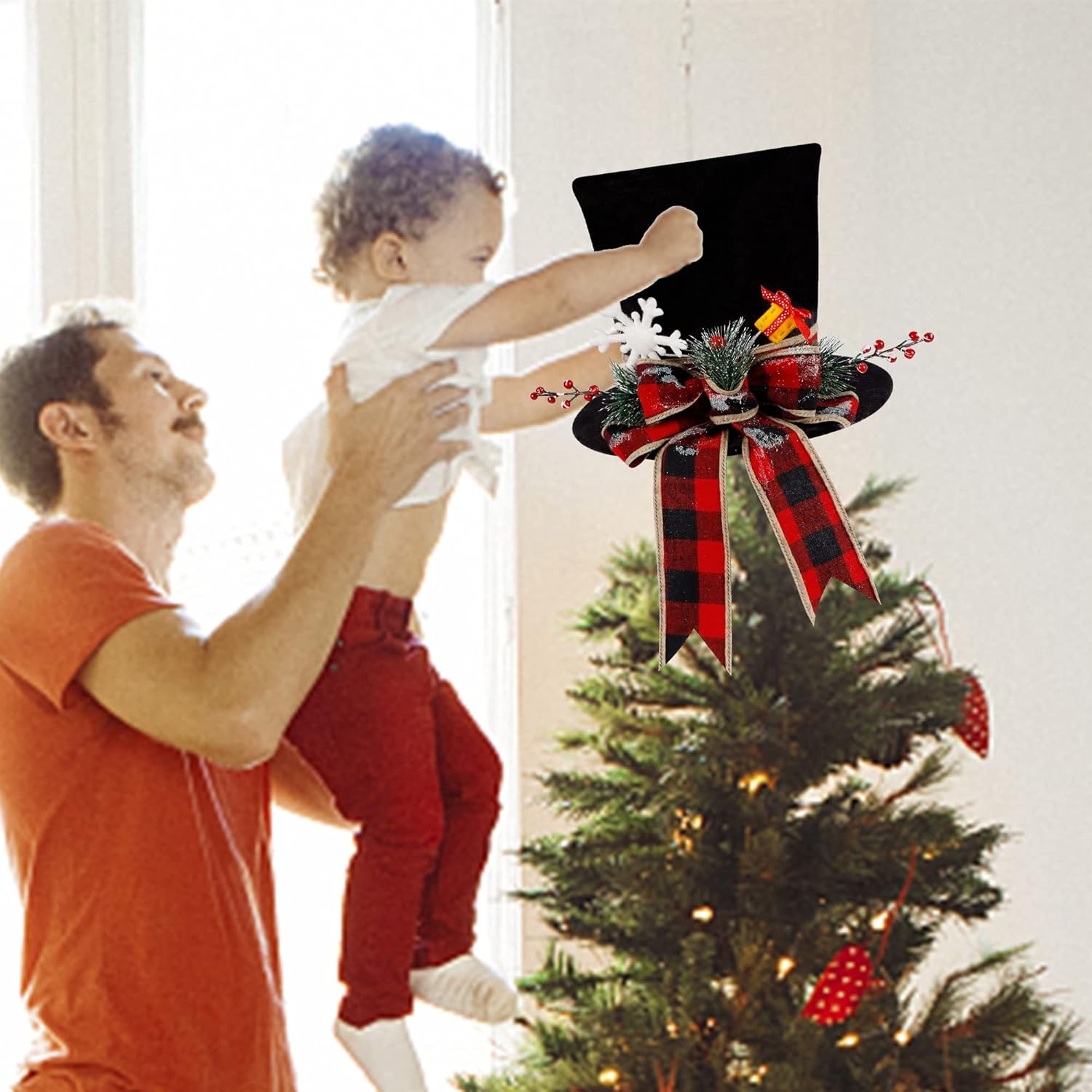 - π© Christmas Tree Topper: Our velvet black top hat is a perfect partner for Christmas tree to add a nice touch to your Xmas decor. Designed with a buffalo plaid bow, the treetop hat will make your tree look more attractive.