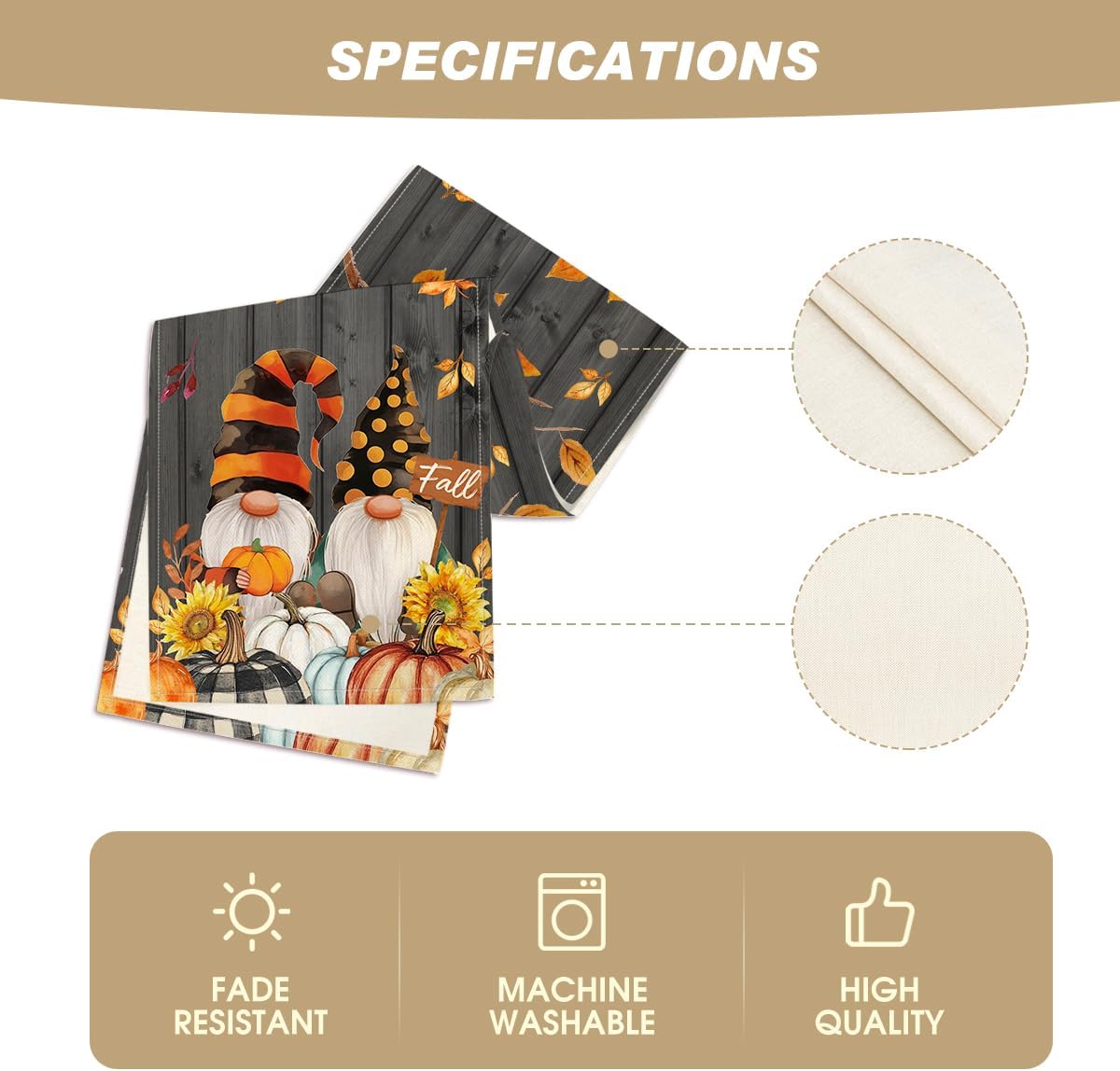 - Easy to Clean : Machine wash and lay the table runner flat to dry. Stays the same and as new after every wash. Material: 100% Polyester, no shrink, no fading. Imported, Country of origin: China