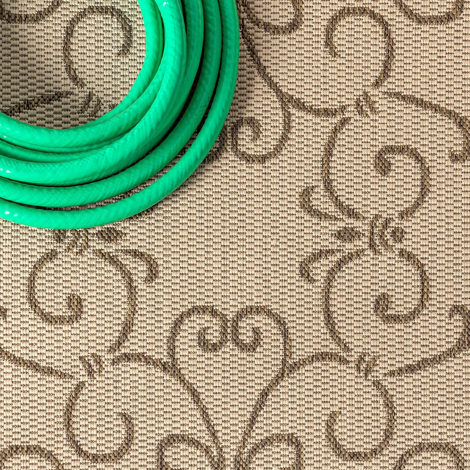 JONATHAN Y Vintage Filigree Indoor Outdoor Round Area Rug 5 Ft Beige/Brown, Charleston Textured Weave for Backyard, Patio, Porch, Easy-Cleaning, High Traffic, Pet-Friendly, Non-Shedding (SMB106A-5R)