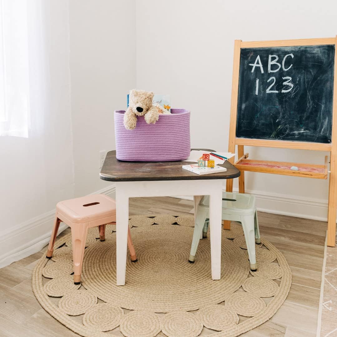 OrganiHaus Woven Storage Baskets for Organizing, Cotton Rope Organizer Bins for Shelves, Closet & Nursery, Dog Toy Basket, Decorative Bins for Toys, Towels & Books - 15x10x9, Purple