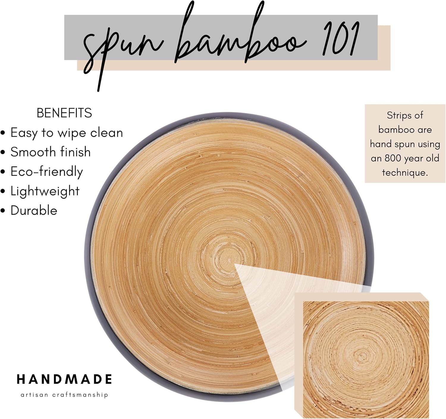 - Habitas Spun Bamboo is made by hand in Vietnam using an 800 year old technique to work the bamboo into form. Our large serving bowl features a sleek lacquered interior and a delightfully smooth painted exterior - choose your color: white, black, gray, sage, or blue..