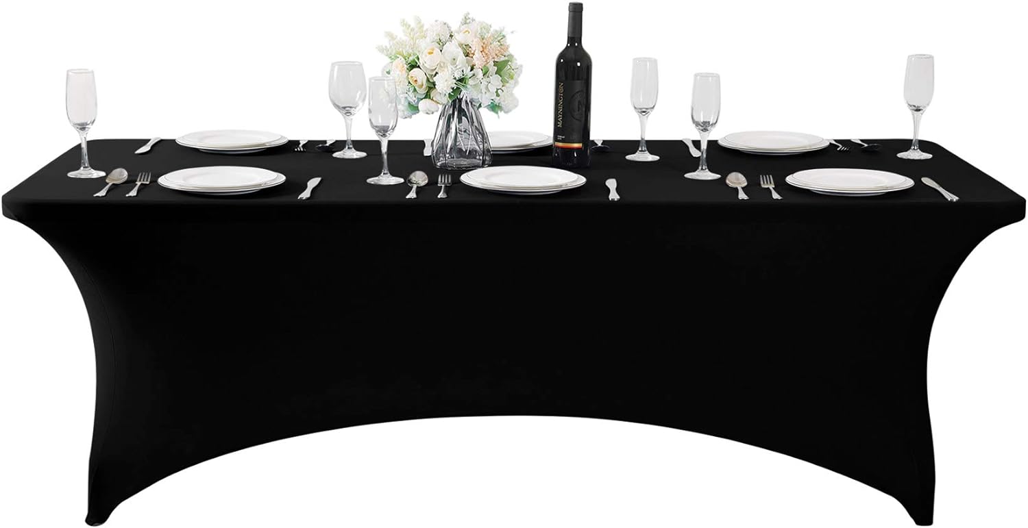- Size & Design:This stretch table cloth is suitable for standard 8FT tables (96" Length x 30" Width x 30" Height). The four-way stretch spandex material and the elastic pocket design of 4 legs can better fit the table.