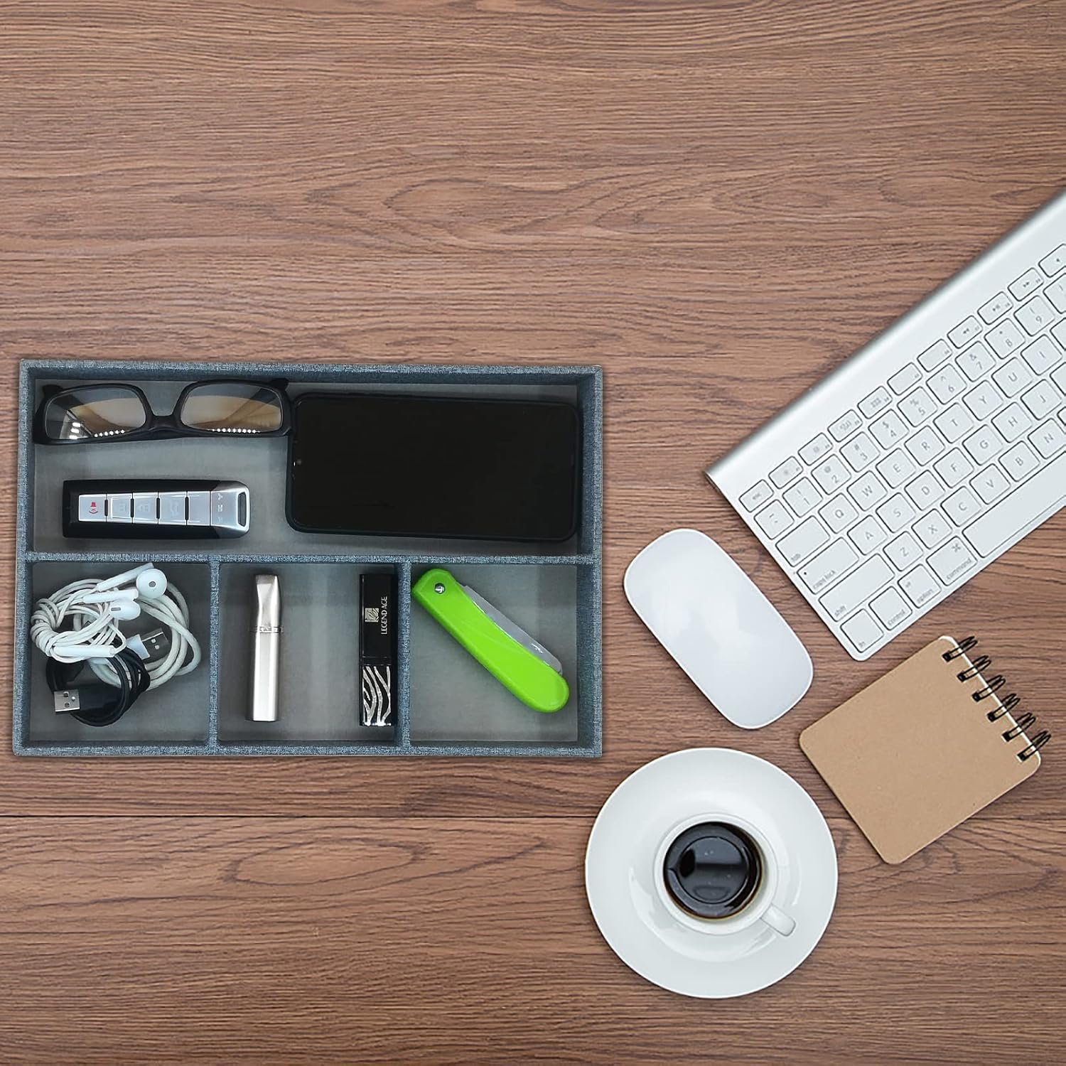 - [Perfect design] 4 compartments, better classification and protection of accessories. The right size will not take up your extra space. Therefore, you donโt need to waste a lot of time searching for misplaced items. Make your space more tidy and orderly. The perfect daily tray, suitable for your desk, bedside table, dressing table, entrance hall, side table, etc.