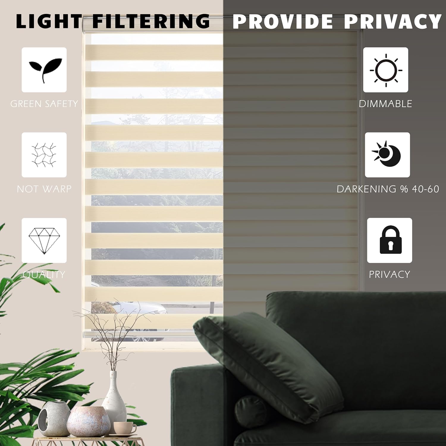 - Zebra Blinds for Windows with a premium polyester fabric - High-End Quality - Easy to install - Easy to clean,Cream Color 51 inch Width.