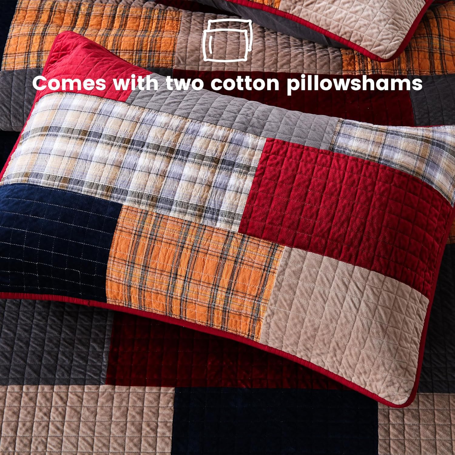 Secgo Imports Velvet King Size Comforter Set- Cotton & Velvet Quilt King Size Set, Red, Black bedspreads (96 * 108 Inch) with 2 Pillow Shams, Patchwork Reversible Lightweight Bedding