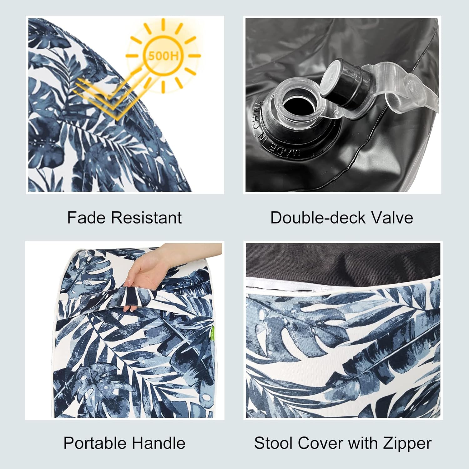 LVTXIII Outdoor/Indoor Inflatable Ottoman, 31"x31"x14" Patio Footrest Stool, Portable Round Pouf Ottoman for Patio Garden, Camping or Home Decoration, Palm Blue