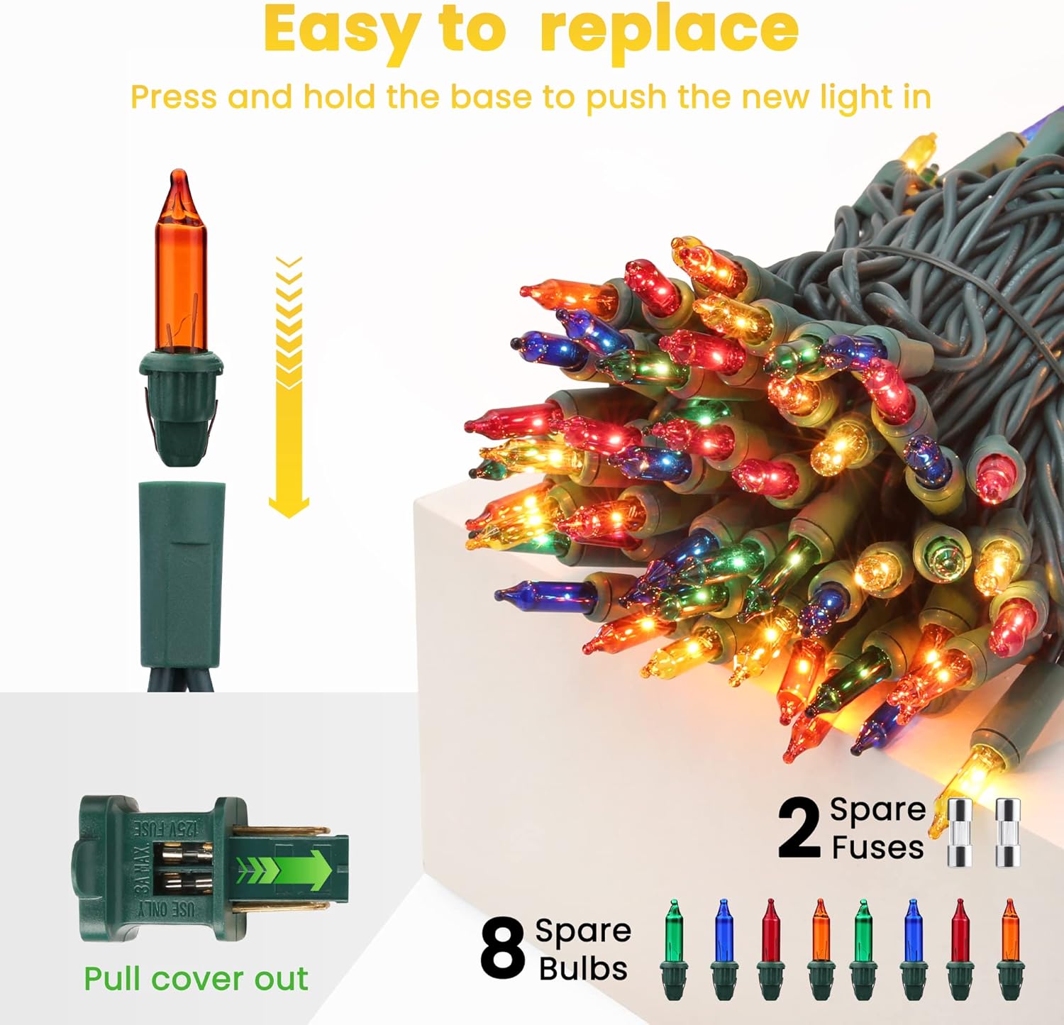 - π Safe and Energy-efficient: 120V UL certified, with built-in fuses, safer to use when decorating your Christmas theme party. 300 count mini string lights up to 88% energy savings compared to standard string lights, low power consumption and super bright illumination, perfect decorative for your every unique day.