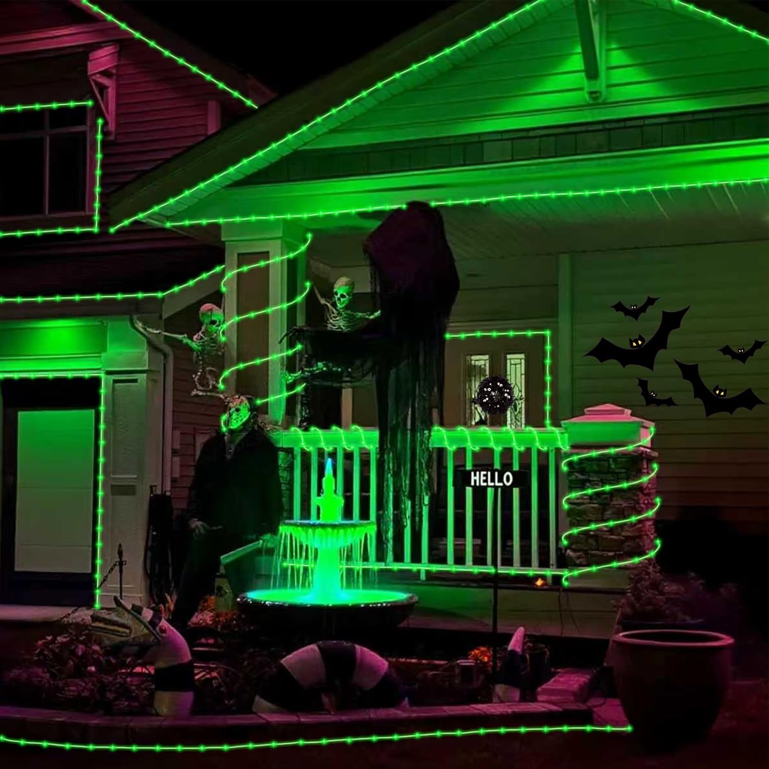- IP44 Waterproof: Our green halloween lights have passed IP44 waterproof and PVC hose protection. It is not only waterproof, windproof, sun resistant, but also anti freezing. It is more durable than other ordinary solar light strings and can meet your different indoor and outdoor decorations throughout the year. Decorating Halloween with green string lights can make your home full of festive spirit.