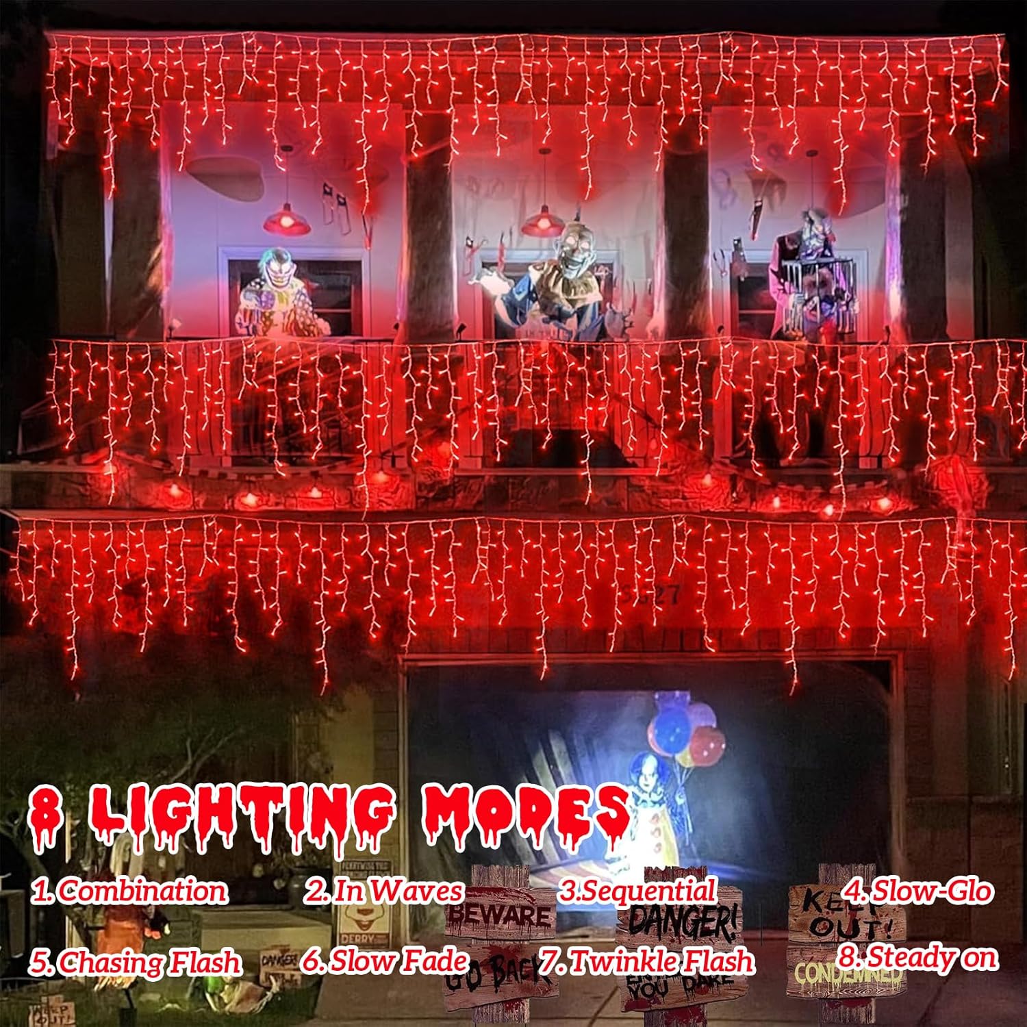 - 8 Lighting Modes: Icicle christmas lights has 8 lighting modes (combination, in wave, sequential, slo-glo, chase/flash, slow fade, twinkle/flash, steady on). Different lighting effects are controlled by the adapter button. Change the mode as needed to attract and surprise your neighbors! Icicle christmas lights will be a eye-catching decoration at your party.