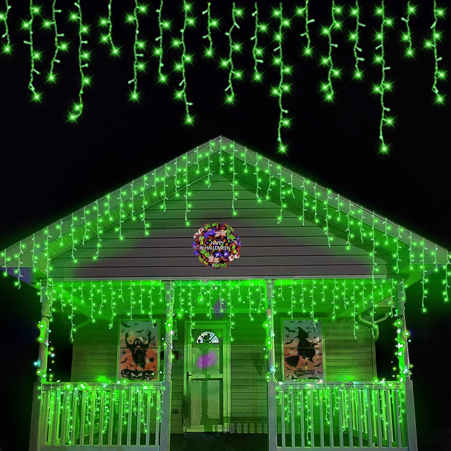 YEGUO 33ft 400 LED Green Icicle Halloween Lights Outdoor Waterproof, 80 Drops Icicle Light Connectable, 8 Modes Icicle String Lights with Memory