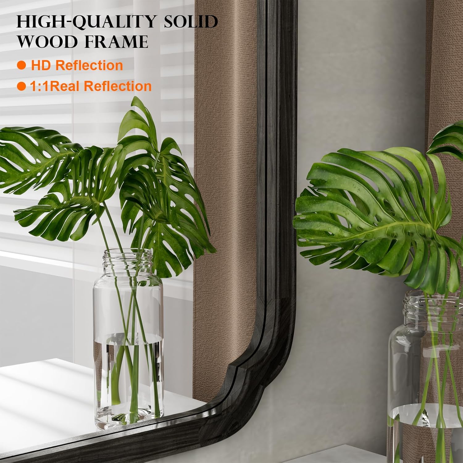 WallBeyond 24" x 36" Rounded Corner Arch Wall Mirror with Wood Frame for Entryway, Living Room or Bedroom Home Decor - Light Woodgrain [24" x 36" Black]