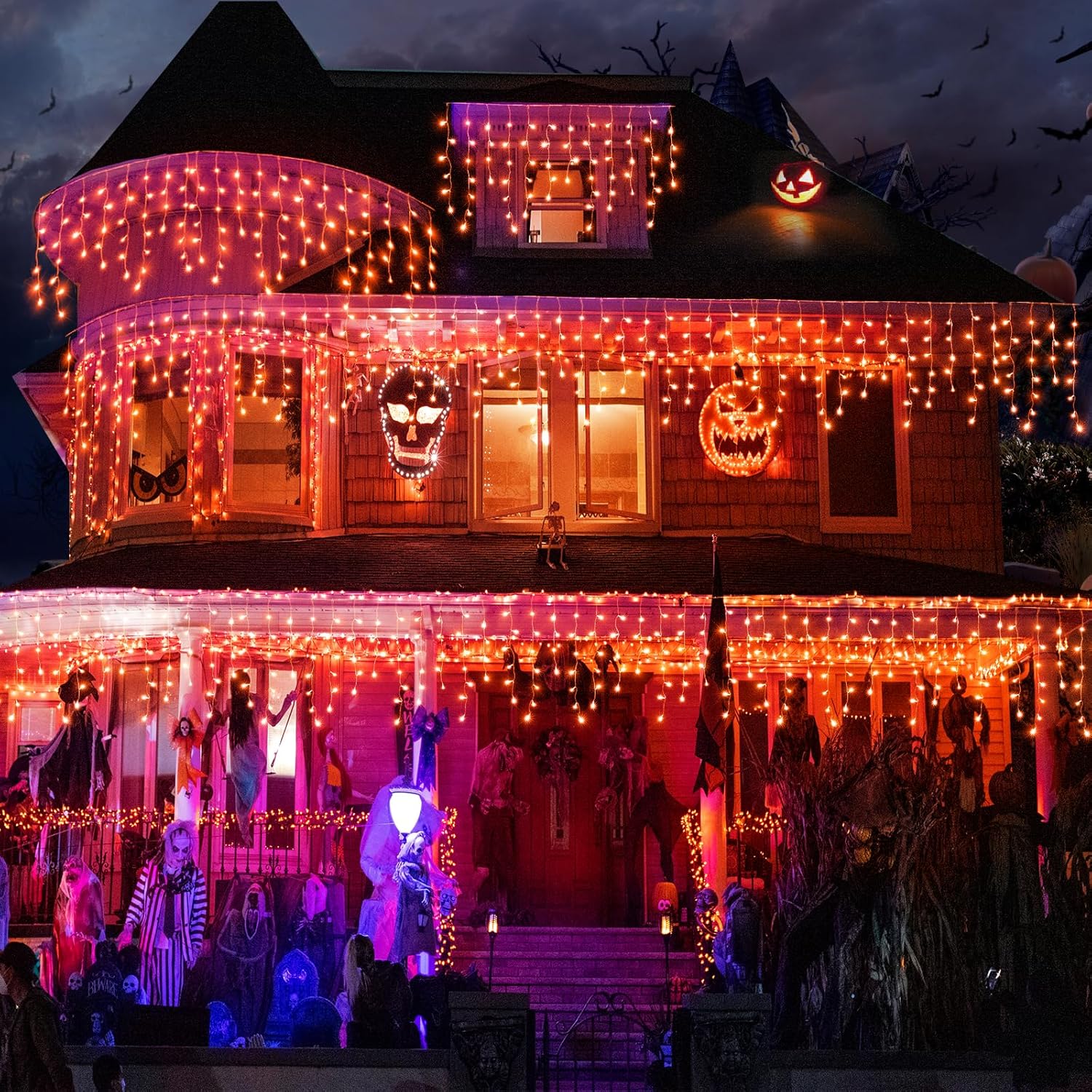 - Easy to Install & Connectable: These Halloween lights outdoor are super easy to use. They can be connected up to 3 sets of icicle lights end to end, which is convenient for decorating broad areas. Our Halloween icicle lights can be easily draped or hung on the roofs, yards, window, patios, garden, fence or bedroom, adding a spooky yet fun Halloween vibe to your space.