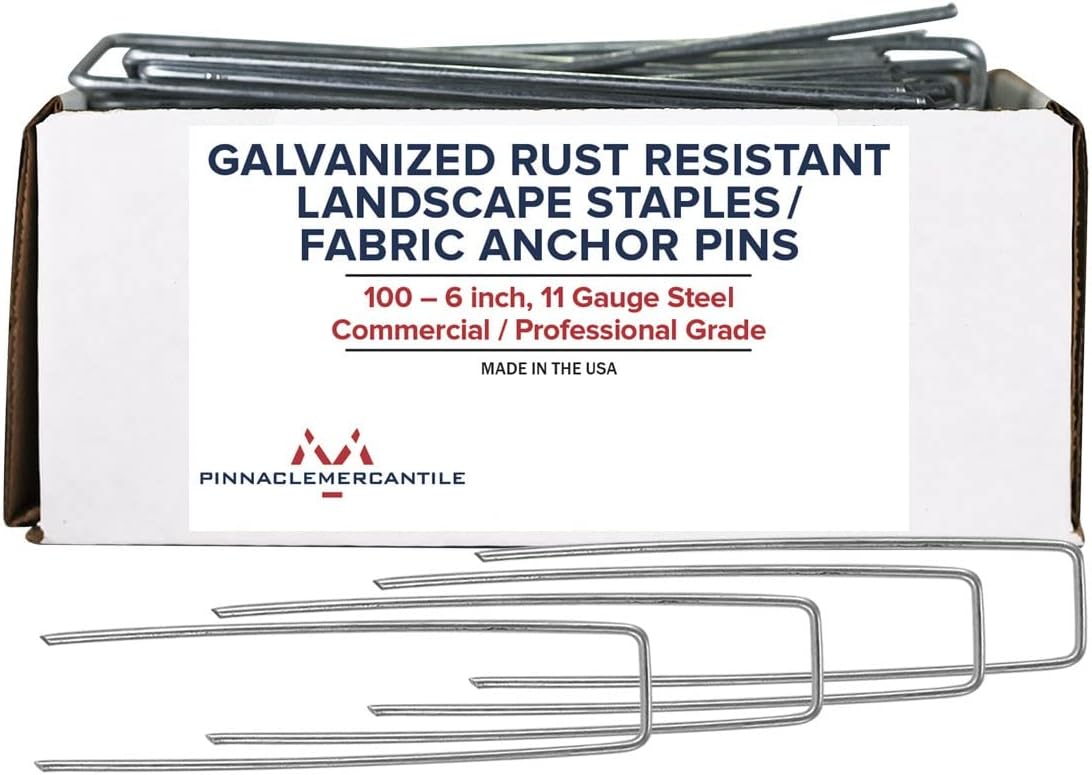 Pinnacle Mercantile USA Made 100 Pack Garden Landscape Staples Weed Barrier Fabric Stakes Galvanized 6 inch Pins Anti Rust Sod Staple 11 Gauge Steel