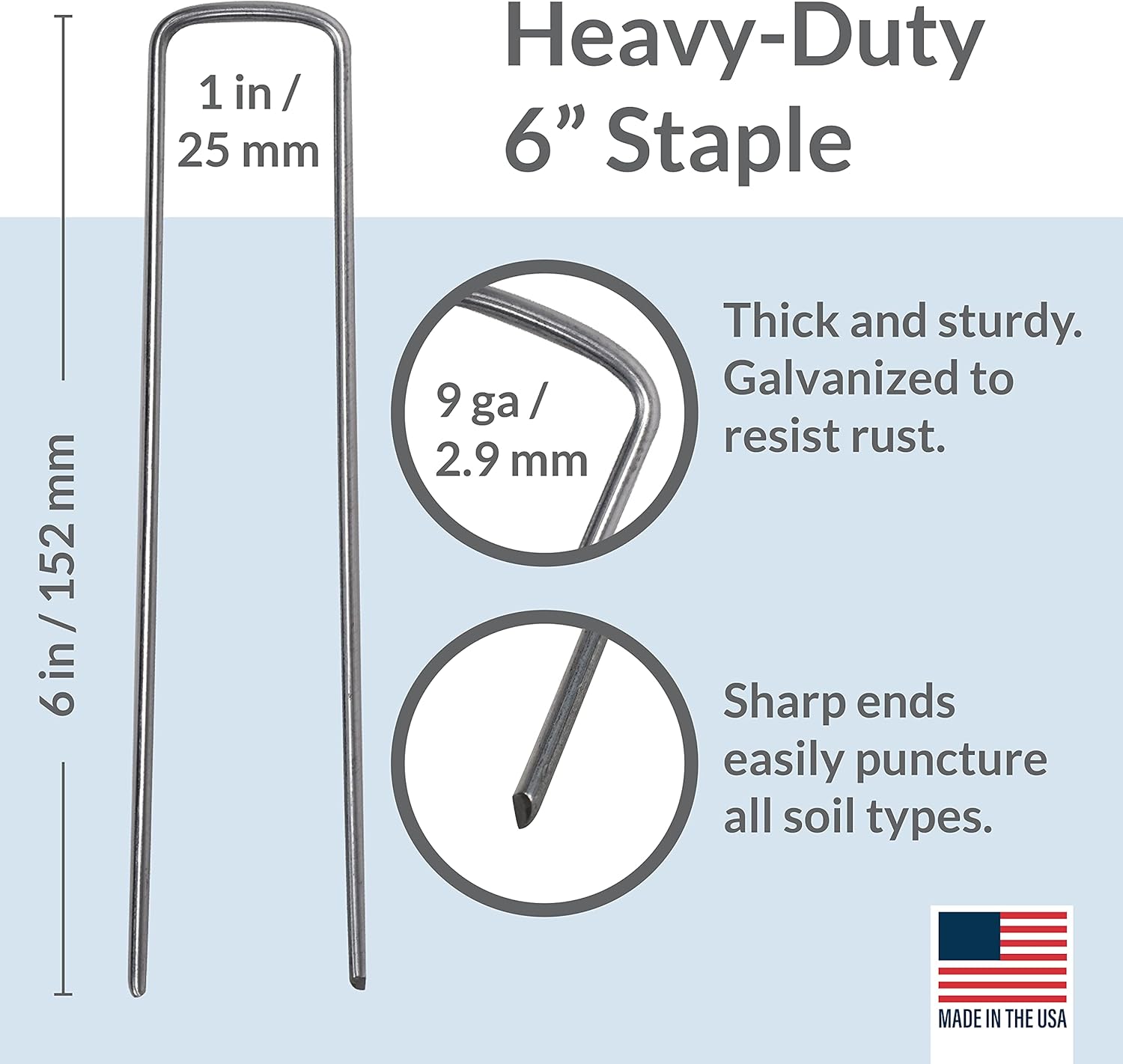 Pinnacle Mercantile 100 Pack Galvanized Garden Stakes Landscape Staples Extra Heavy Duty Sod Ground Anchors Anti Rust 6 inch Metal Pins 9 Gauge USA Made …