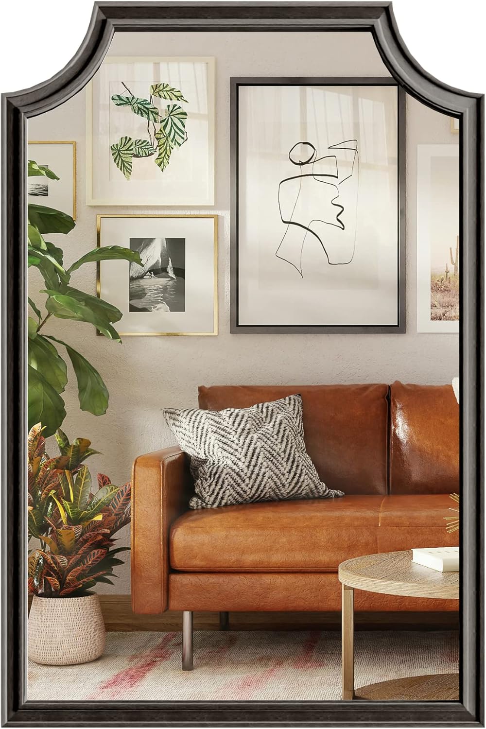 WallBeyond 24" x 36" Scalloped Corners Arch Rectangle Wall Mirror with Wood Frame for Entryway, Living Room or Bedroom Home Decor - [24" x 36" Black]