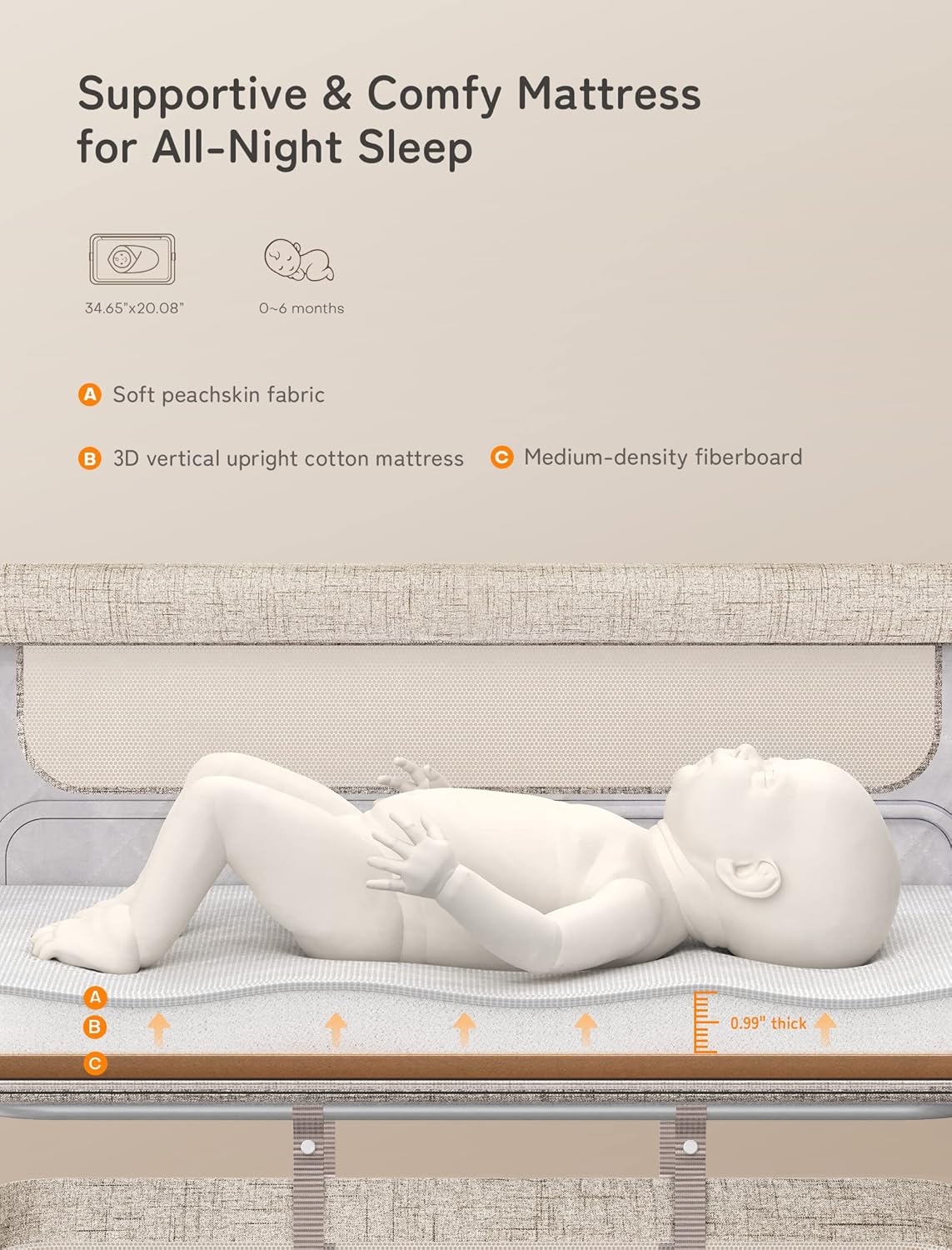 - Designed for Dreamy Sleep: A mosquito net made from breathable mesh holes and blackout meteor hemp shading promotes a peaceful sleeping environment. The detachable sheet and side fabric can be easily removed and hand washed, for ultimate ease of the bassinet bedside sleeper use