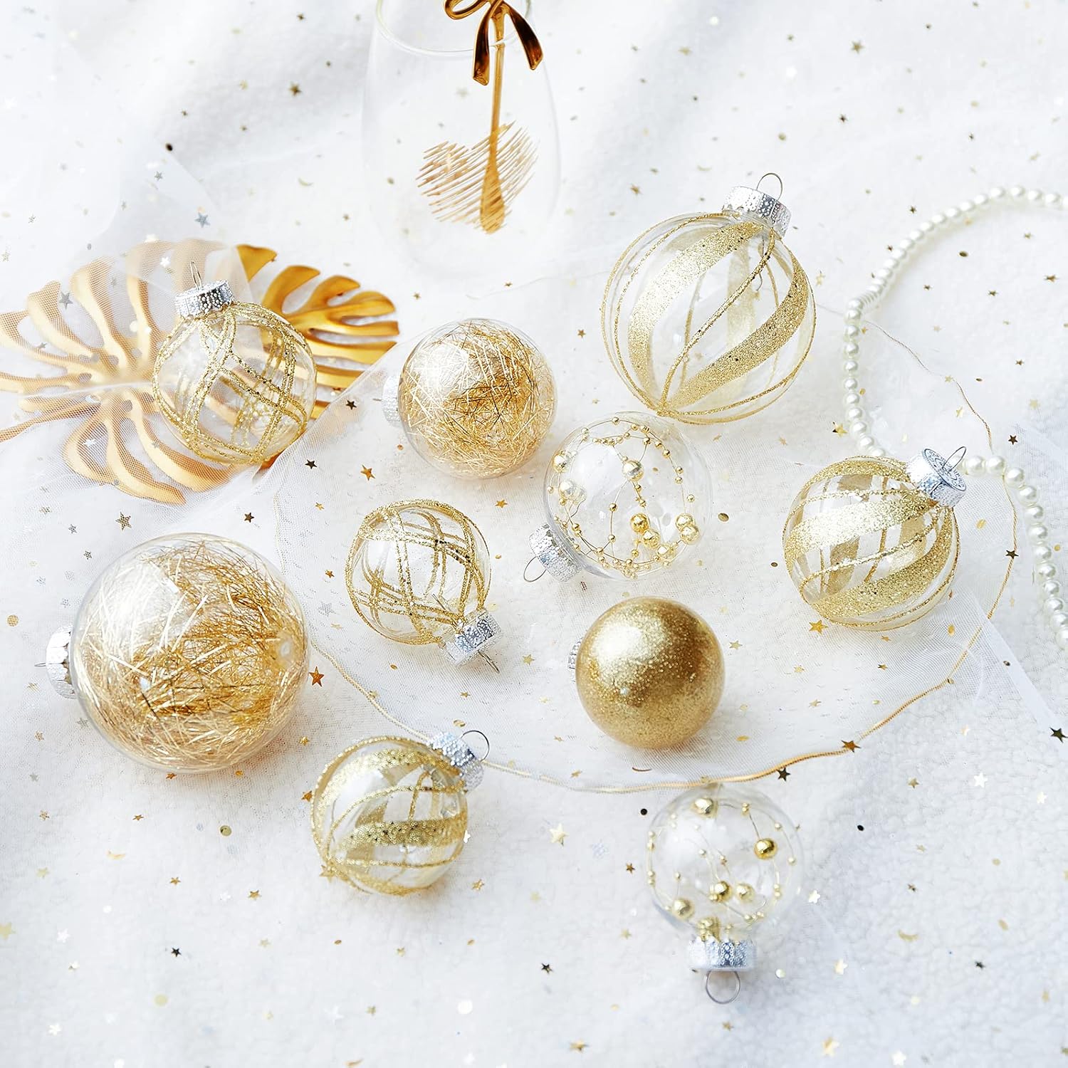 • Gold Christmas Ball Ornaments--These 24 clear Christmas decorations are made of durable and environmentally friendly plastic with excellent shatter resistance. These Christmas balls have shiny decorations and a transparent glaze base, which are perfect for hanging on your Xmas tree and decorating your Home with them,this will become part of your vacation.