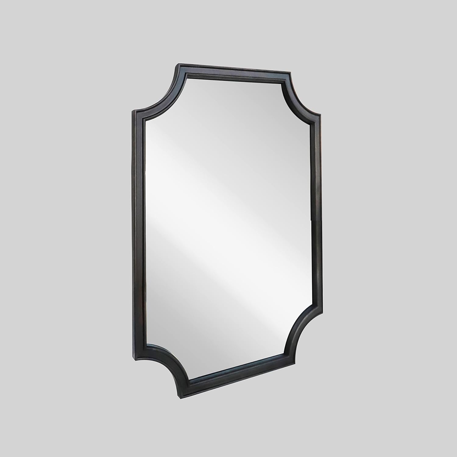 WallBeyond 20" x 30" Full Scalloped Corners Arch Rectangle Wall Mirror with Wood Frame for Entryway, Living Room or Bedroom Home Decor - Light Woodgrain [20" x 30" Black]