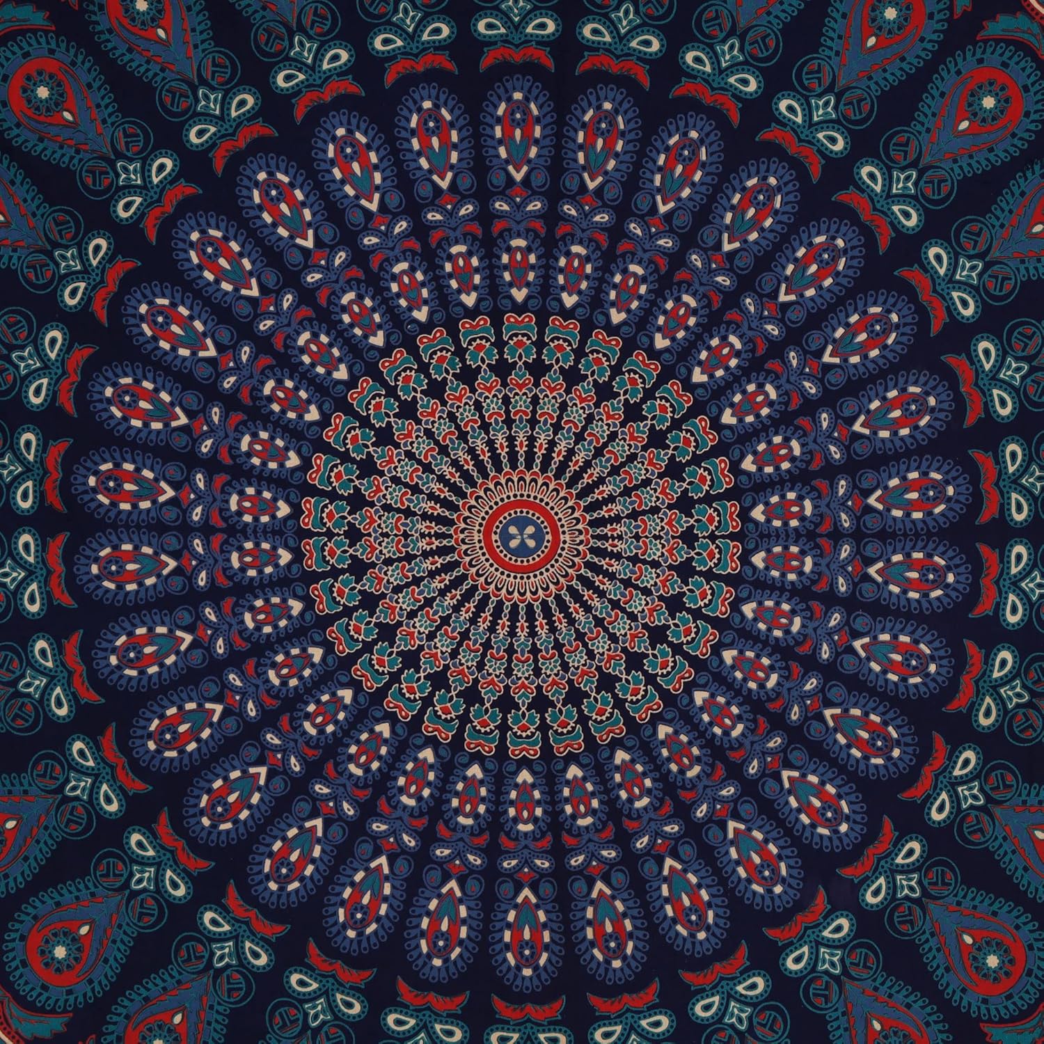 Bless International Handmade Indian hippie Bohemian Psychedelic Peacock Mandala Wall hanging College Dorm Beach Throws Table Cloth Bedding Tapestry (Midnight Blue, Queen(84x90Inches)(215x230Cms))