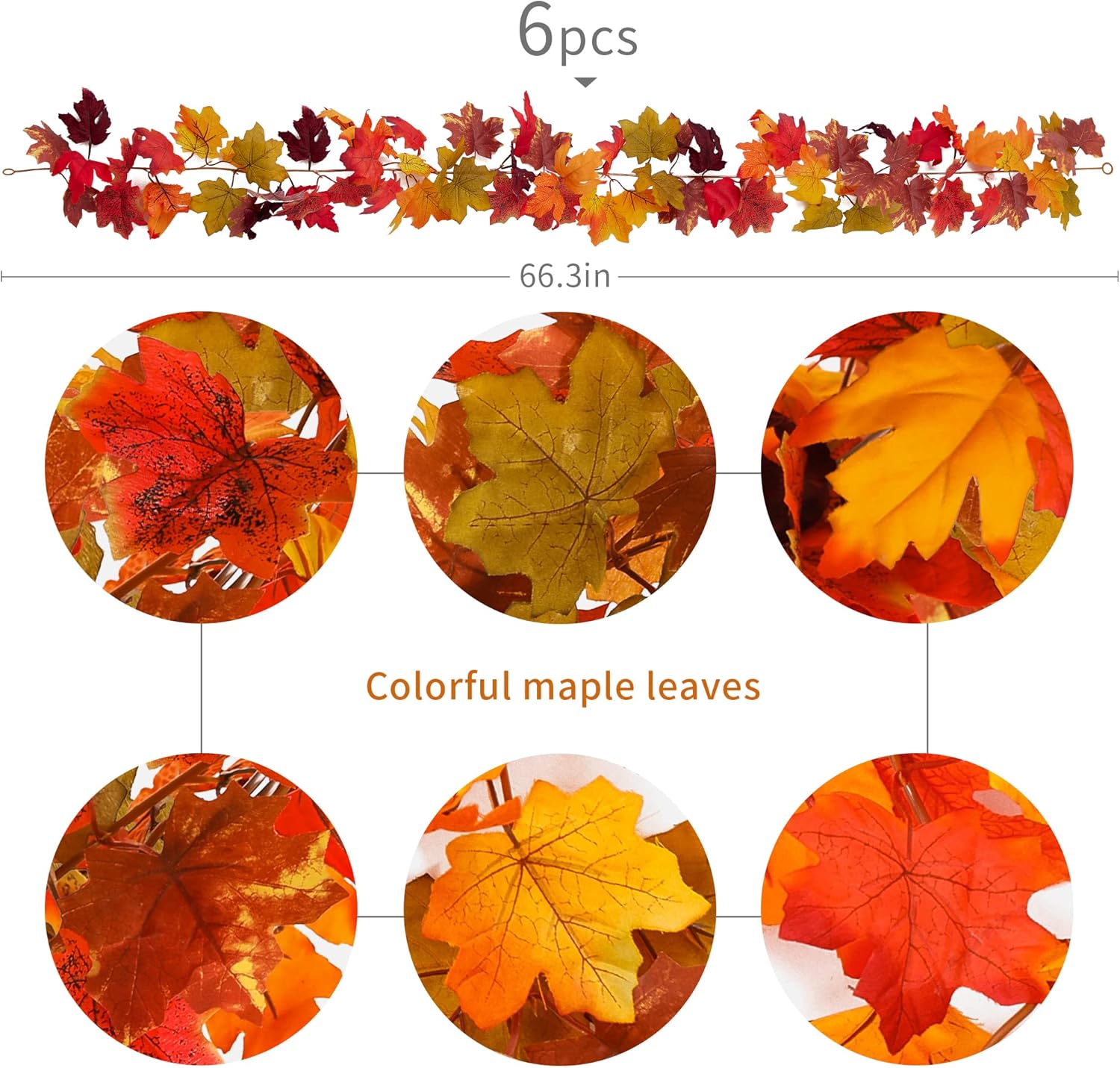 6PCS Fall Maple Leaves Garland, Party Joy 5.6Ft Artificial Maple Leaf Autumn Garland Hanging Fall Vines Table Decorations Front Door Fall Decor Thanksgiving Decorations Decor Outside Indoor Decor