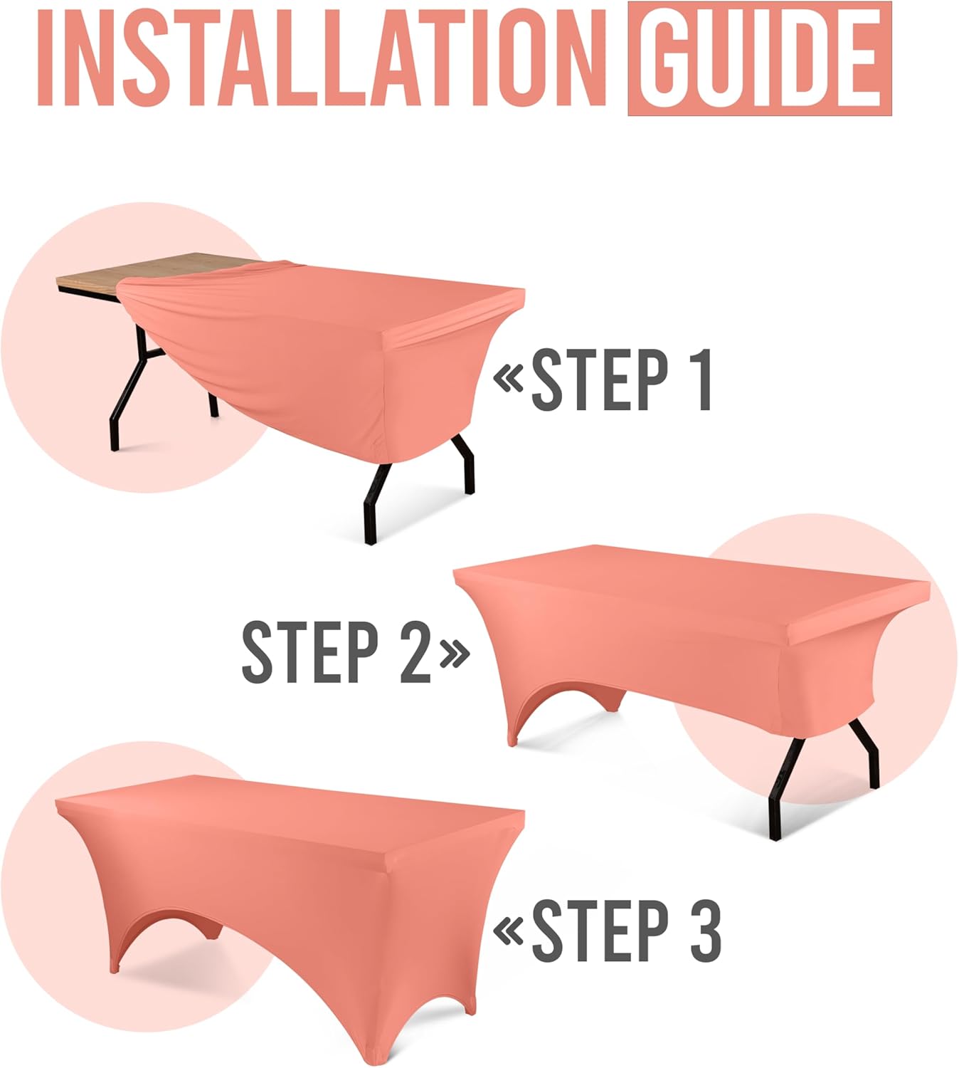 Utopia Kitchen 6FT Spandex Tablecloth [1 Pack, Coral] 200 GSM Stretch, Fitted, Washable and Wrinkle Resistant Table Cloth Rectangle Cover for Trade Shows, Wedding, Parties [72Lx30Wx30H Inch]