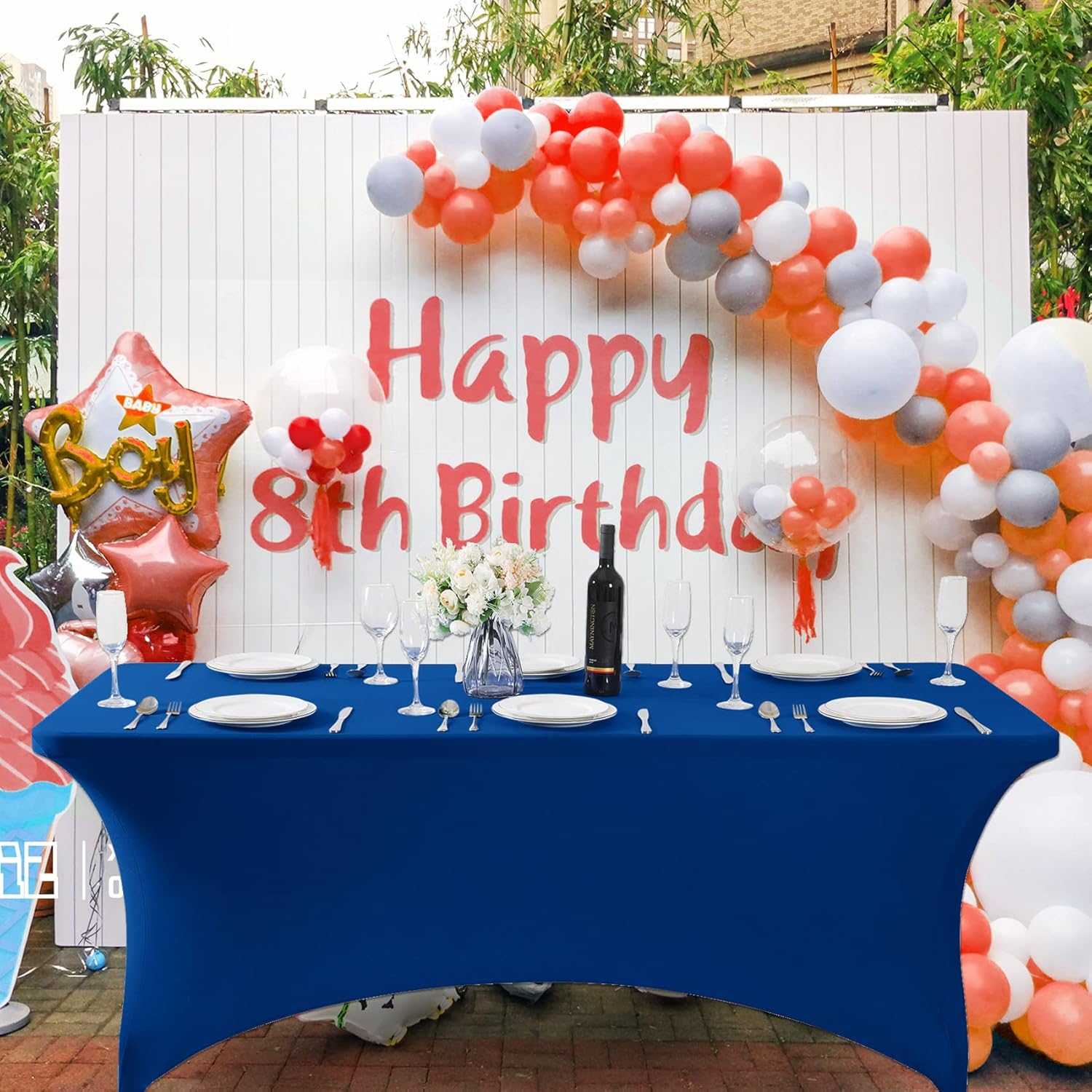 SuperO 2Pack Waterproof Spandex Table Cover for 6FT Table Universal Fitted Stretch Tablecloth for Party, Banquet, Wedding and Events-Classic Blue