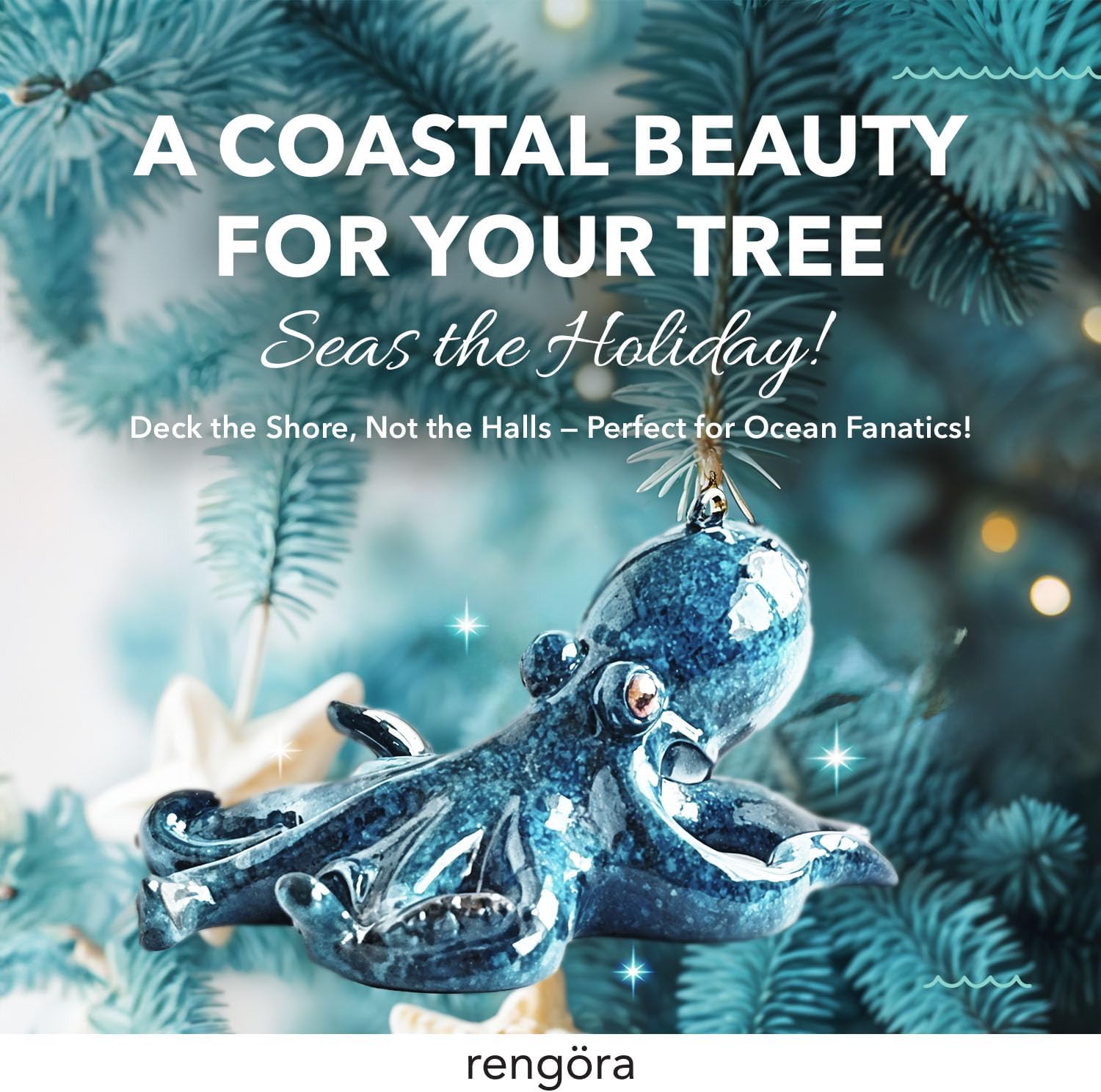 Hand-Painted Beach Christmas Ornament – Coastal Tree Decoration for Ocean Lovers – Unique Nautical Ornament for Christmas Tree or Stocking Stuffer Gift (Octopus)