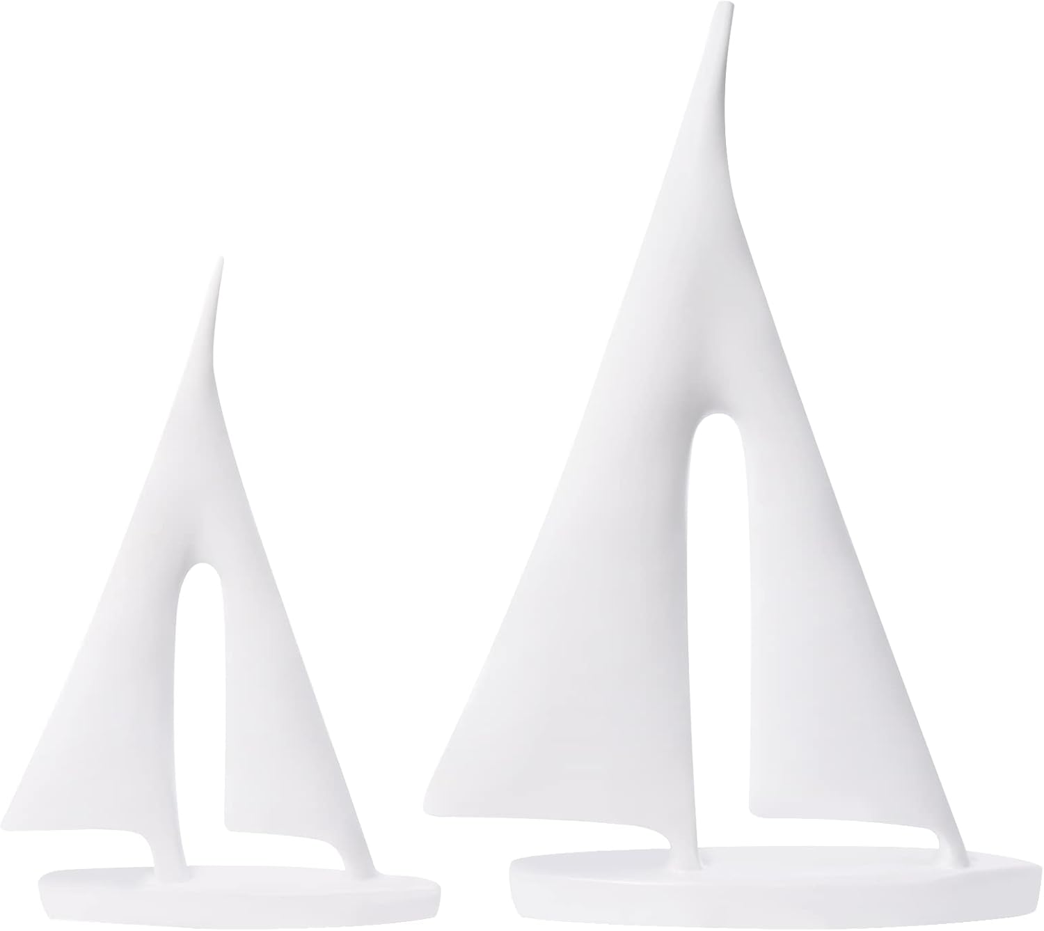 Modern Sculptures Home Decor, Sailboat Decor Ornament, Boat Decorations Statue Decor, Art Sculptures and Statues, Sailboat Gifts Home Office Bathroom Shelf Decor (White-2 Pack)