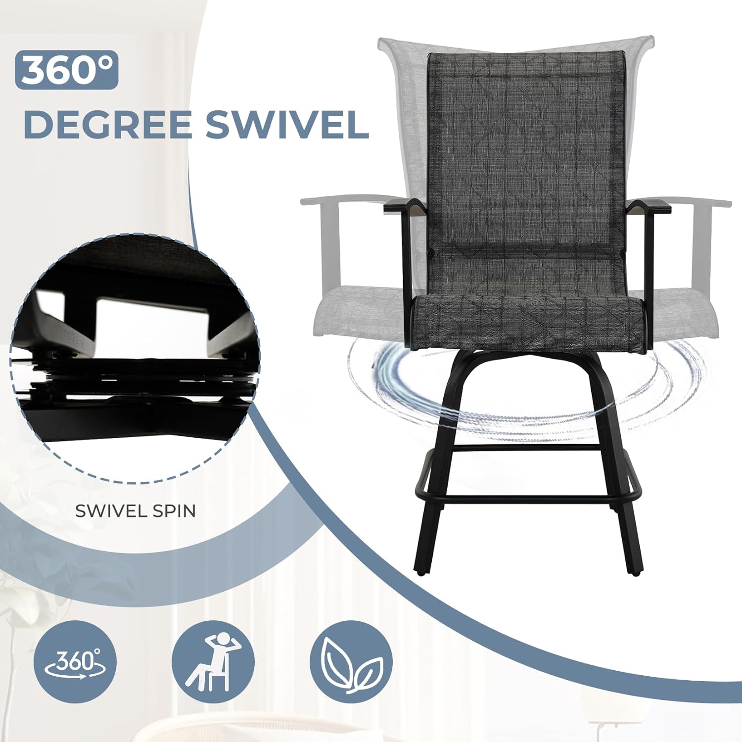 - FUNCTIONAL FEATURES: The balcony bar chair with 360Β° free rotation design, combined with the reinforced design of double support ribs at the bottom, can enjoy the outdoor scenery 360Β° freely