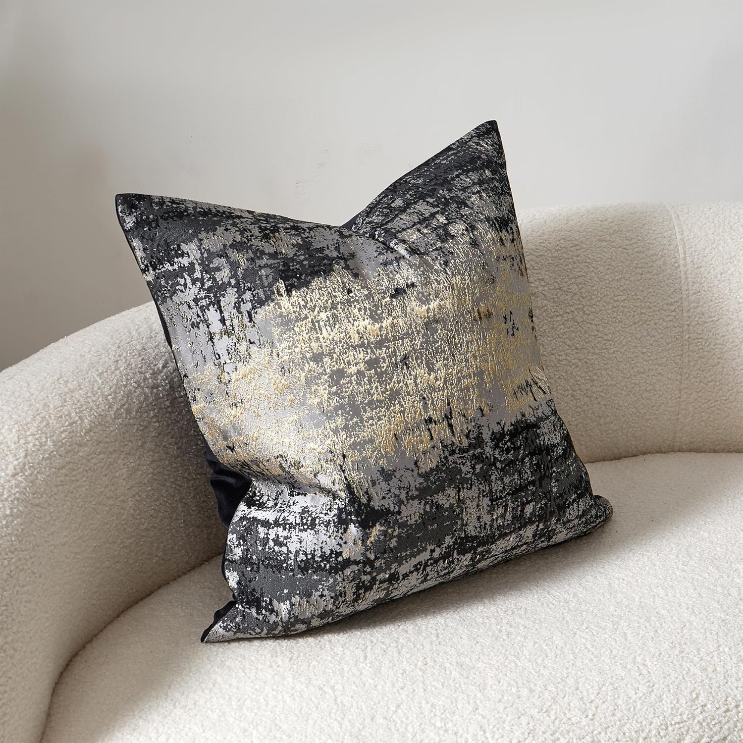 THE-TINOART Charcoal Gray & Black Pillow Cover 24x24 - Gold Embroidered Luxury Jacquard, Modern Reversible Throw Pillow Cover for Sofa/Bed, Velvet Backing