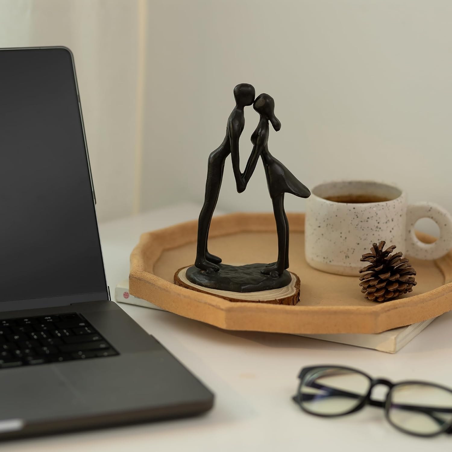 - KISSING COUPLE FIGURINES - This contemporary sculpture captures the sweet moment of a kissing couple, the black finish makes it like a silhouette look, adds a romantic flare for industrial and farmhouse style. Could match the most decorative ideas.