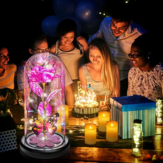 - Warm Galaxy Rose Birthday Gifts for Women: Pink Forever Roses Flower Gifts: Will never wither away, symbolize everlasting love; and the butterfly symbolizes hope and good wishes; The Heart-shaped crystal pasted on base, a symbol of toughness and eternity; while illuminated by the string of lights more luxurious, exquisite and full of artistic sense. It is a unique artwork, Very suitable as Mothers Day Gifts, Anniversary Gifts, or birthday gifts for women, mom, wife, grandma, daughter