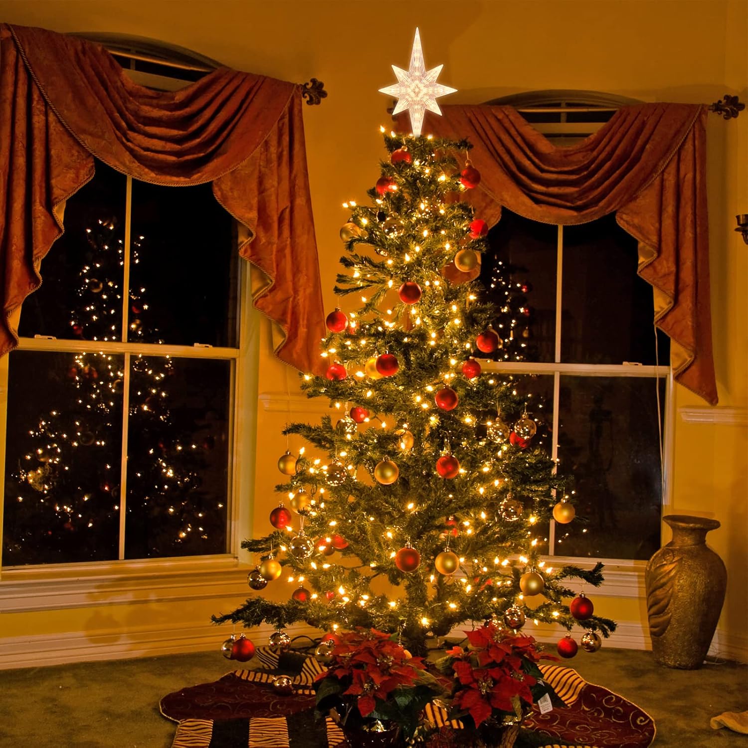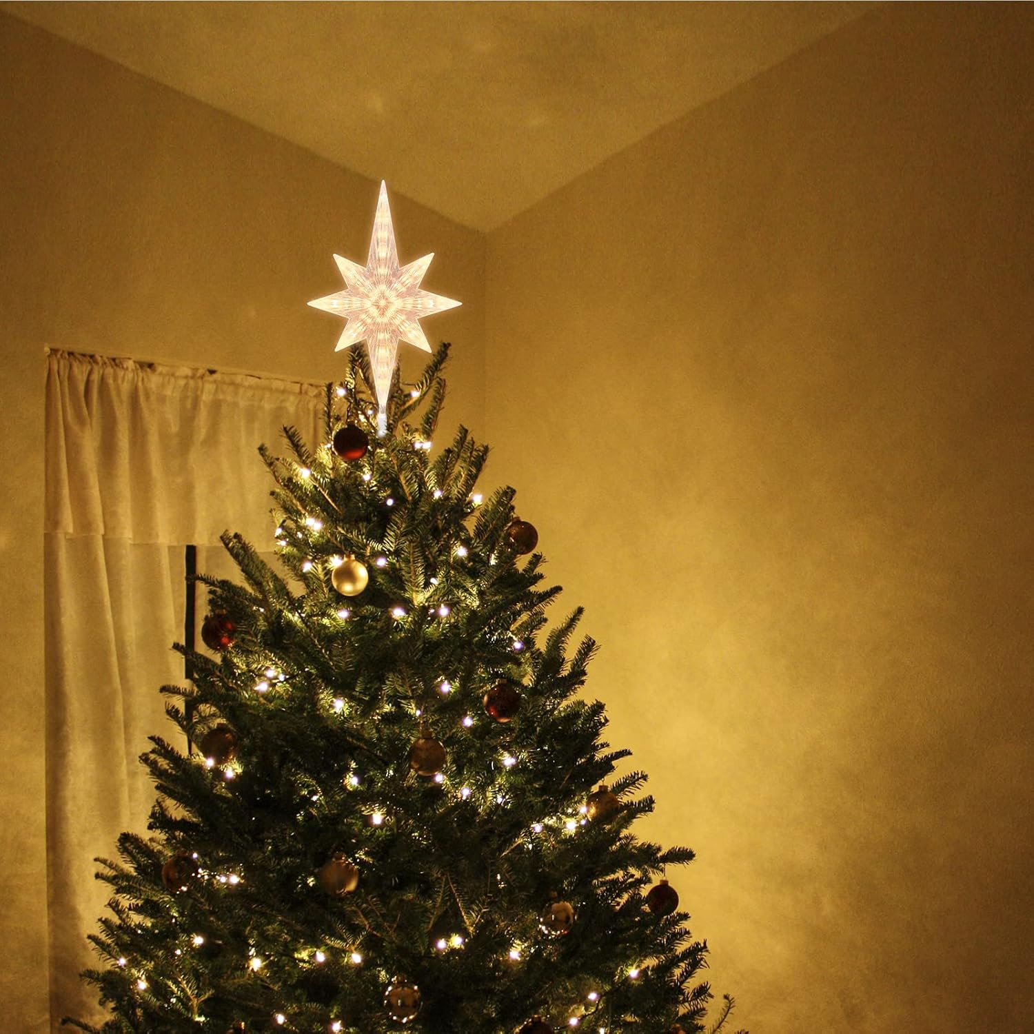 - This Bethlehem Star tree topper is designed with warm white light, will bring you a warm and comfortable atmosphere. You and your families will be very relax and enjoy the evening.