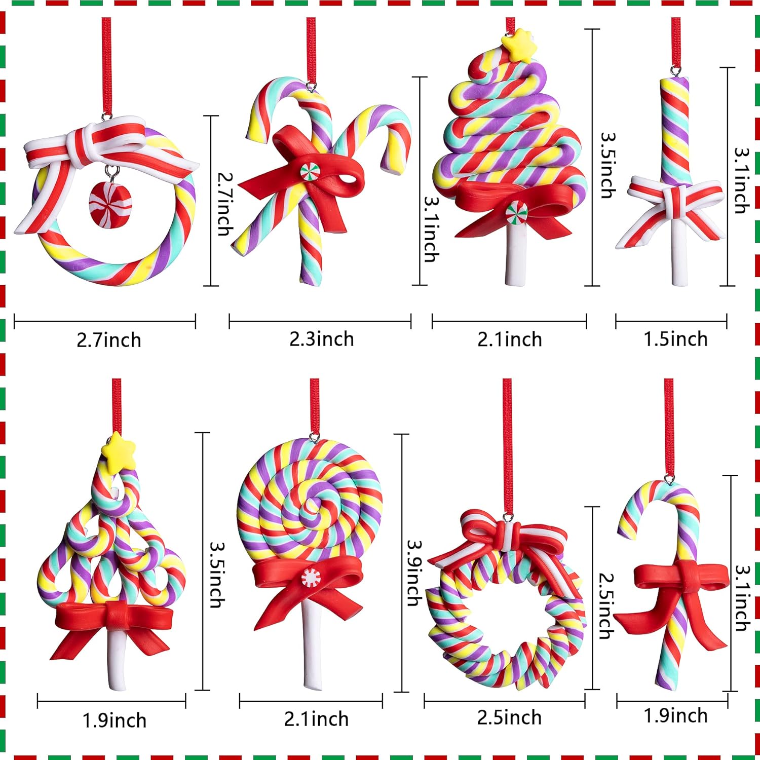 codree 8 PCS Christmas Lollipop Ornaments- Candy Ornaments for Christmas Tree- Candies Polymer Clay Ornament for Xmas Tree Party Hanging Decoration