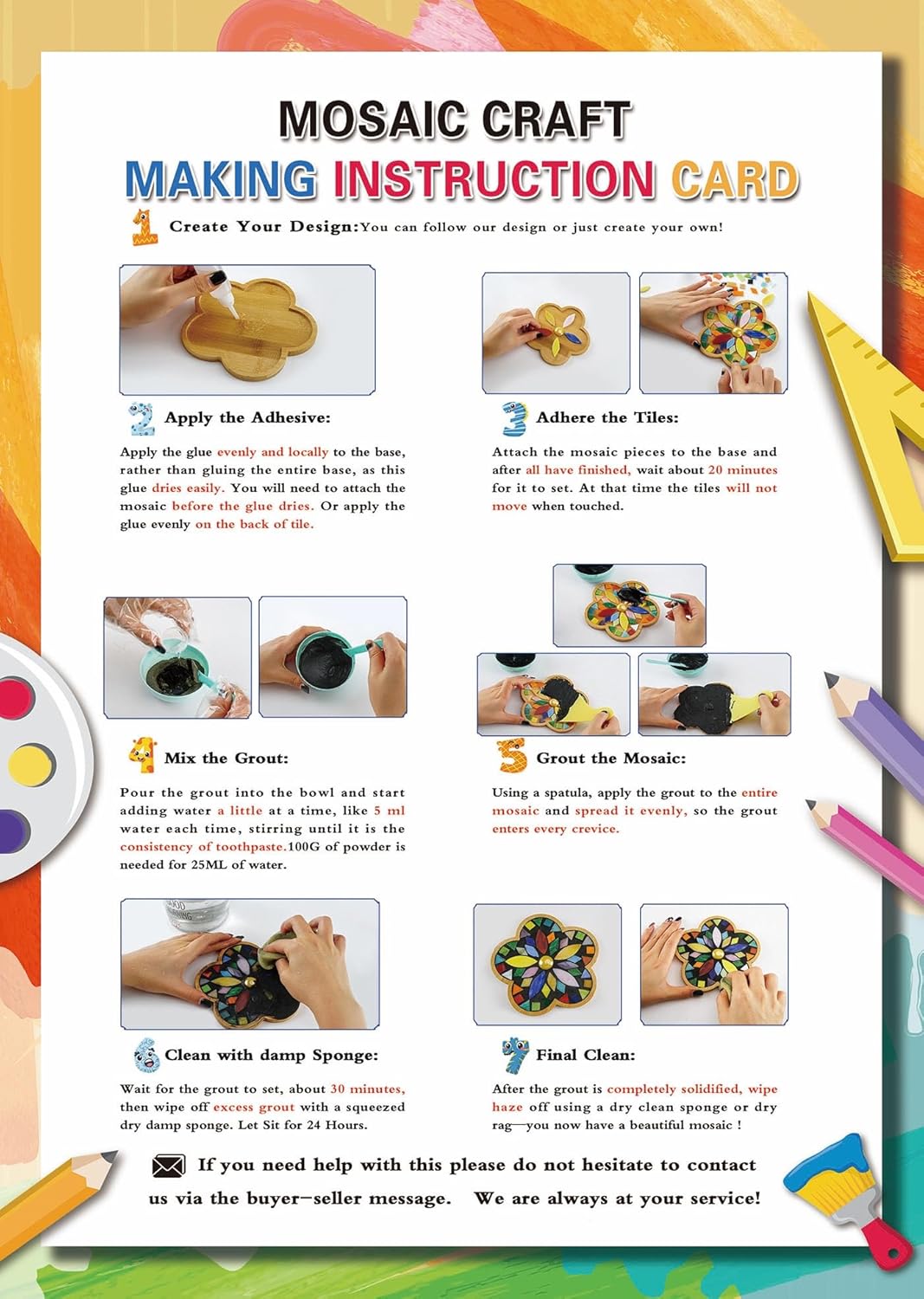 - Multi-application -- All the materials are frost-resistant and waterproof so your finished mosaic art can do more than just bring color to your garden serve as a drink coaster and decorate any room in your home