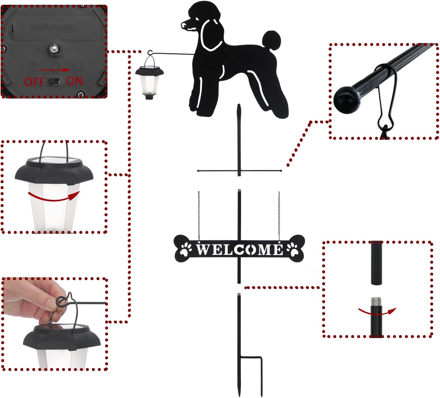 BAYN Solar Poodle Garden Stakes Decorative with a Lantern Dog Silhouette Welcome Sign Outdoor Garden Decor for Yard, Lawn, Patio, Pathway