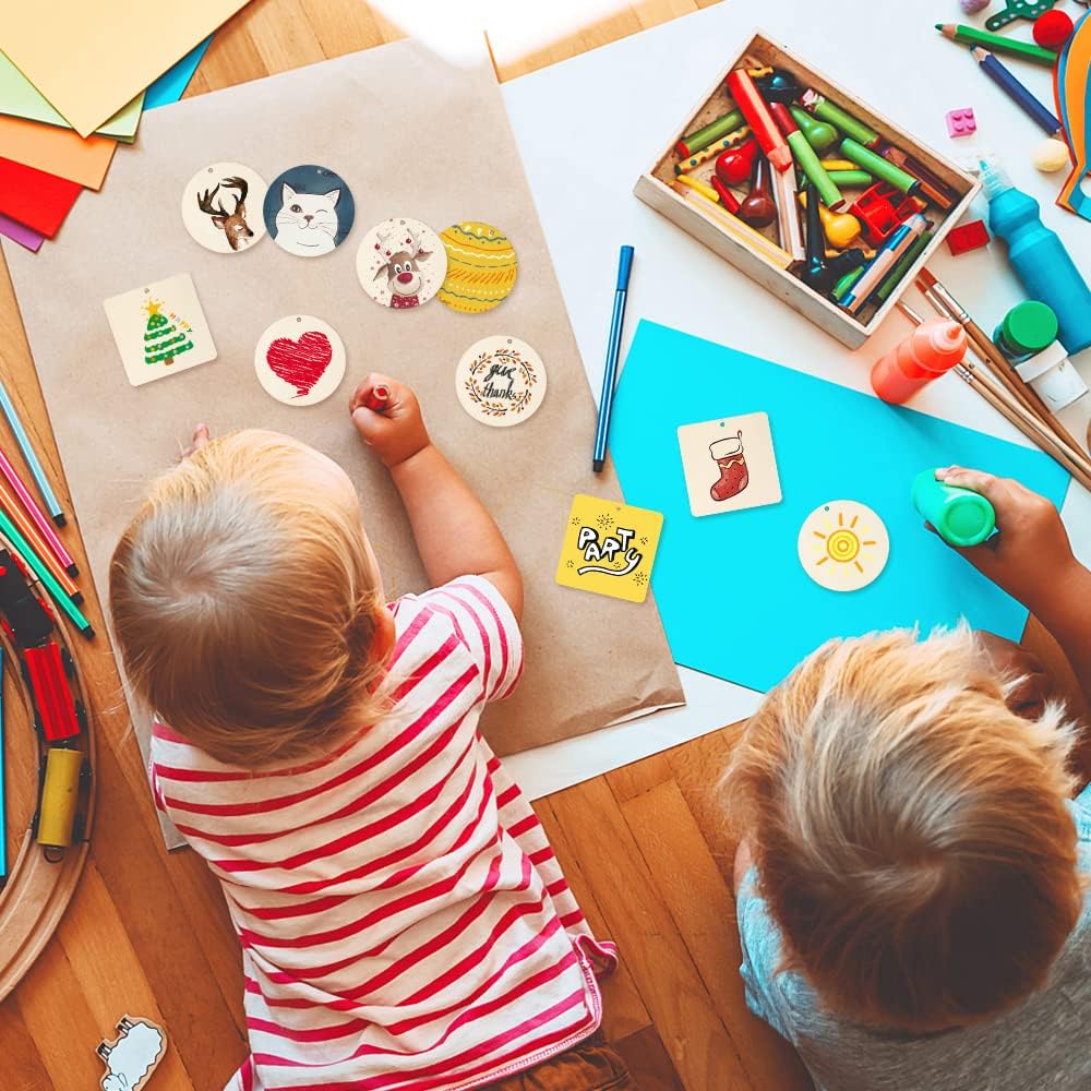 - ENJOY YOUR DIY FUN: Unfinished wood tags can DIY with different tools for Christmas ornaments, painting, drawing, writing, carving, etc