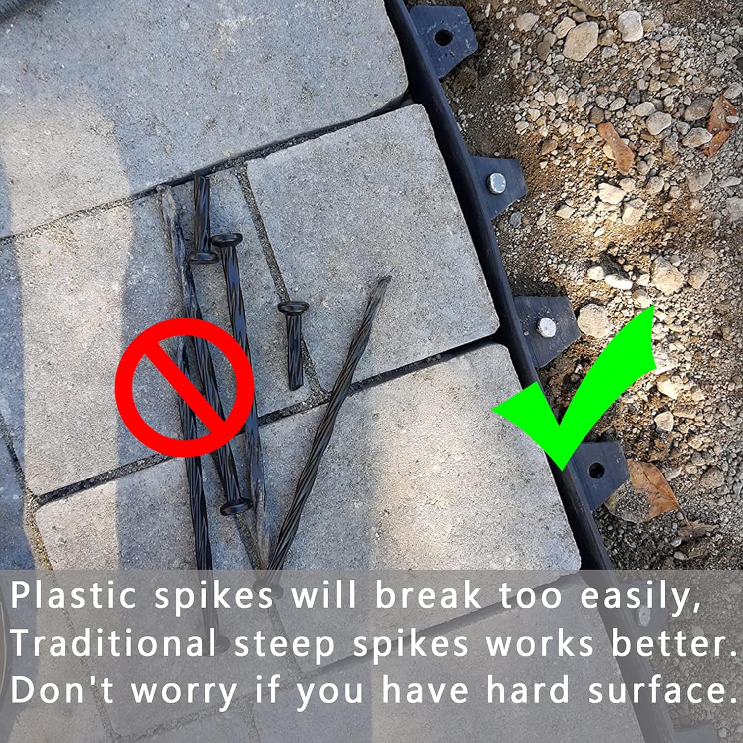 - ●HIGH-QUALITY STEEL-----The stakes are made of high quality hard steel. Strong and durable. Spikes can be used for dig-in landscape/paver edging, yard ornaments, tent stakes, wood outdoor steps and more.