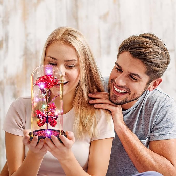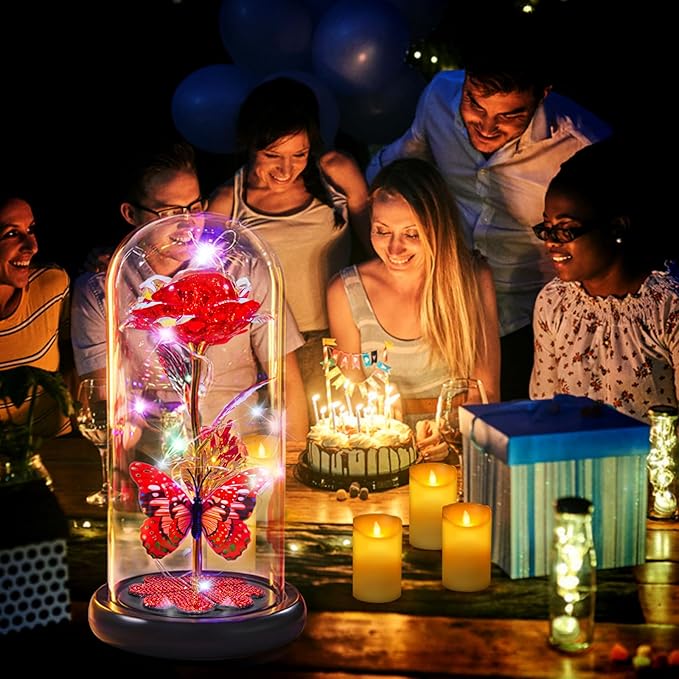- Warm Galaxy Rose Birthday Gifts for Women: Red Forever Roses Flower Gifts: Will never wither away, symbolize everlasting love; and the butterfly symbolizes hope and good wishes; The Heart-shaped crystal pasted on base, a symbol of toughness and eternity; while illuminated by the string of lights more luxurious, exquisite and full of artistic sense. It is a unique artwork, Very suitable as Mothers Day Gifts, Anniversary Gifts, or birthday gifts for women, mom, wife, grandma, daughter