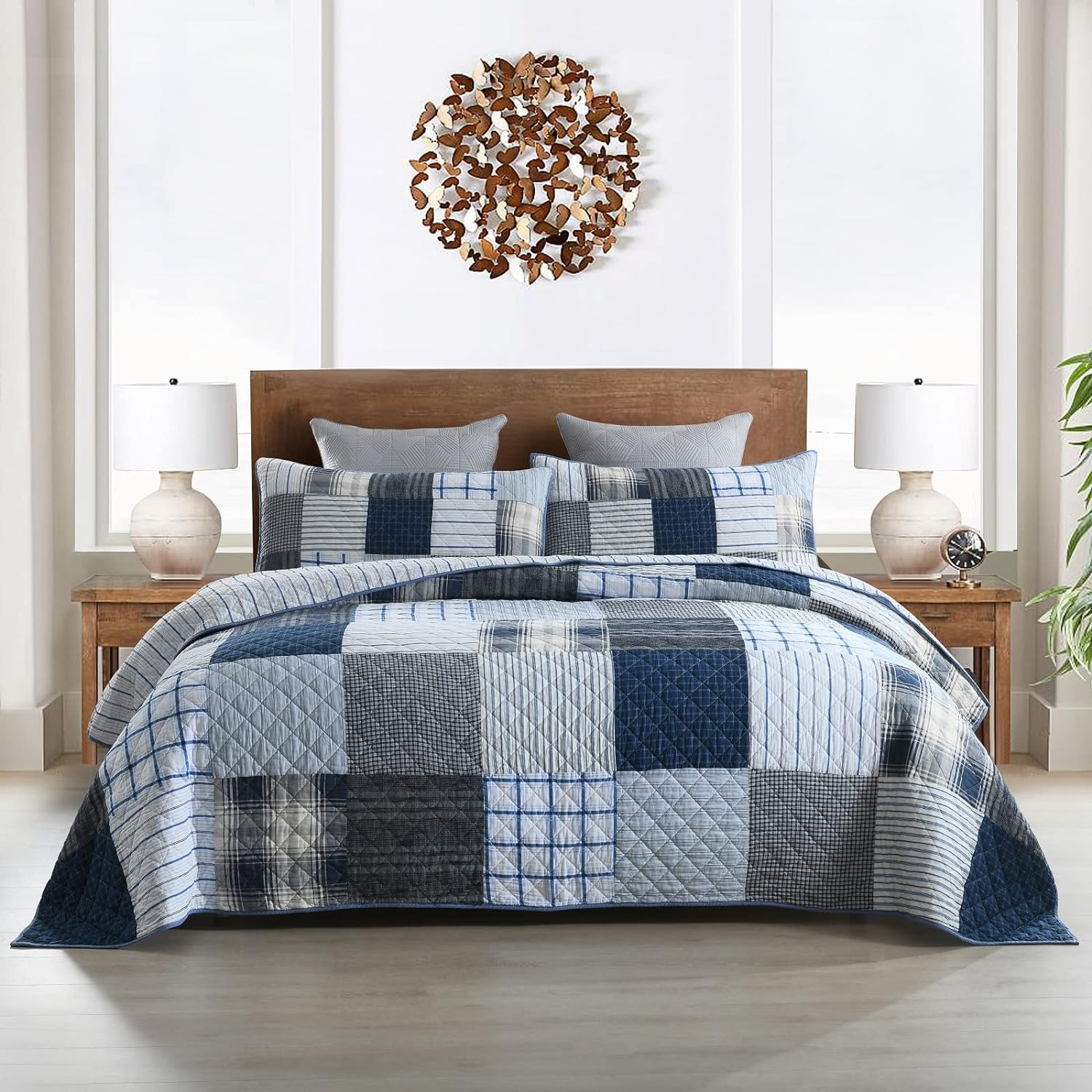 - PREMIUM MATERIAL: The king size quilt set is made of 100% cotton. The material is skin-friendly and soft to touch. The king bedspread is lightweight and breathable. It keeps you warm all seasons.