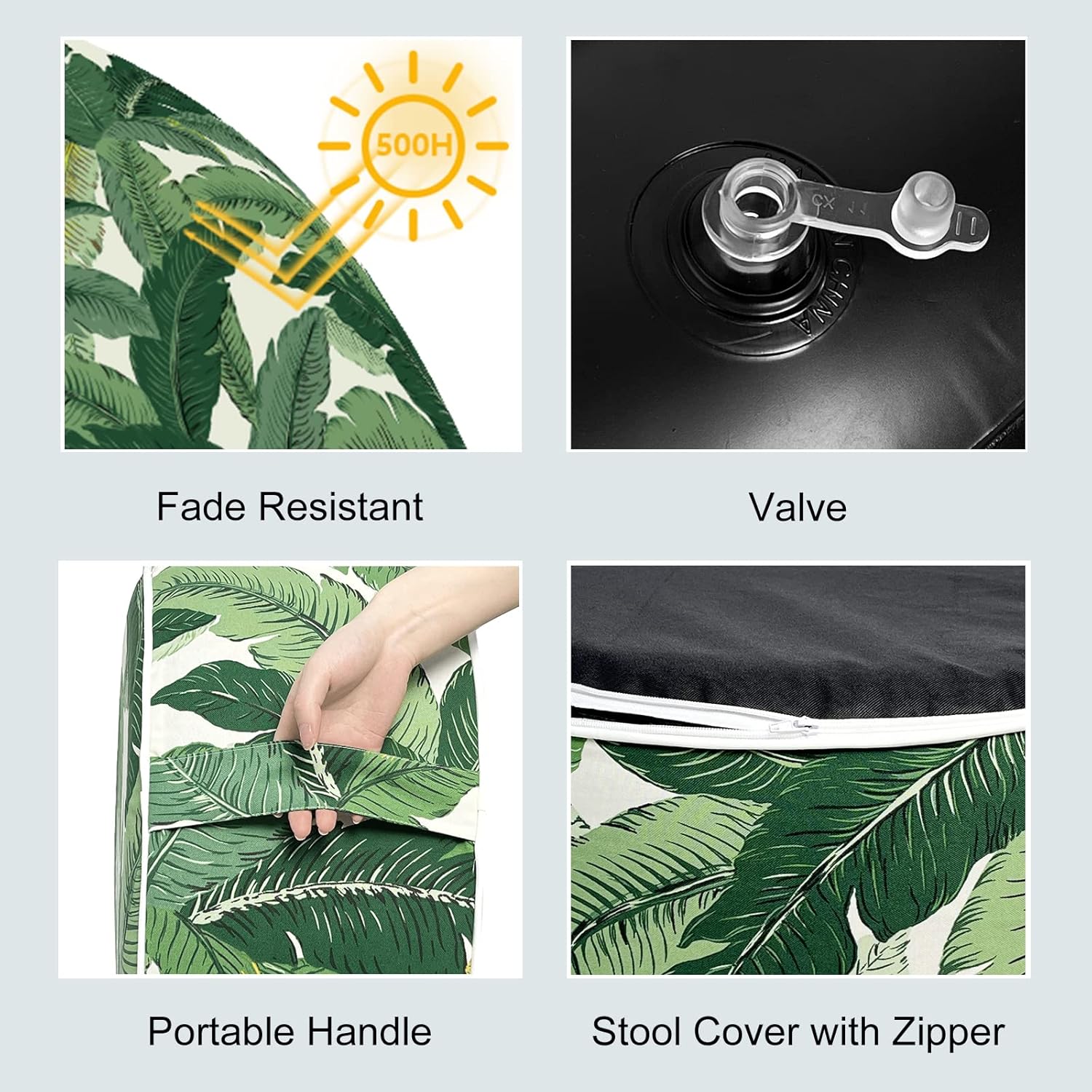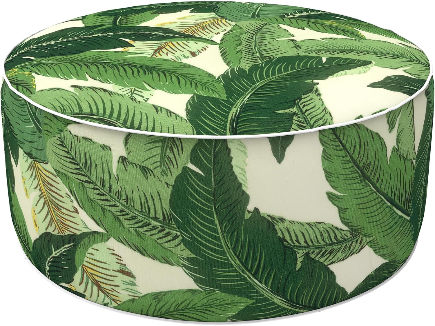 LVTXIII Outdoor/Indoor Round Inflatable Ottoman, All Weather Patio Footstool, Portable Footrest Seat for Patio Garden, Camping or Home, 21"x21"x9", Swaying Palms Green