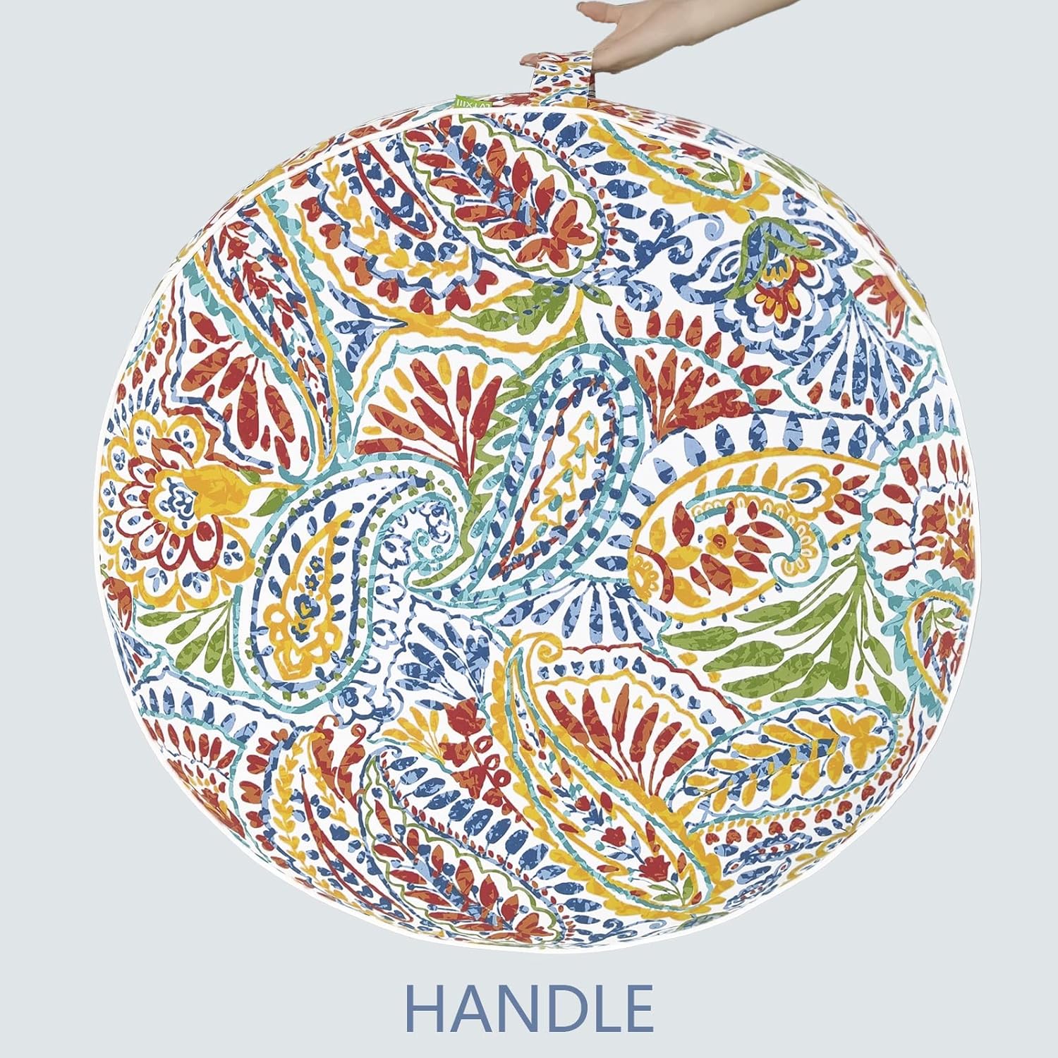 LVTXIII Indoor/Outdoor Inflatable Ottoman, D31 x H14 Inch Large Round Ottoman, All Weather Foot Rest Stool, Portable Footrest for Patio, Garden, Camping and Home - Paisley Multi