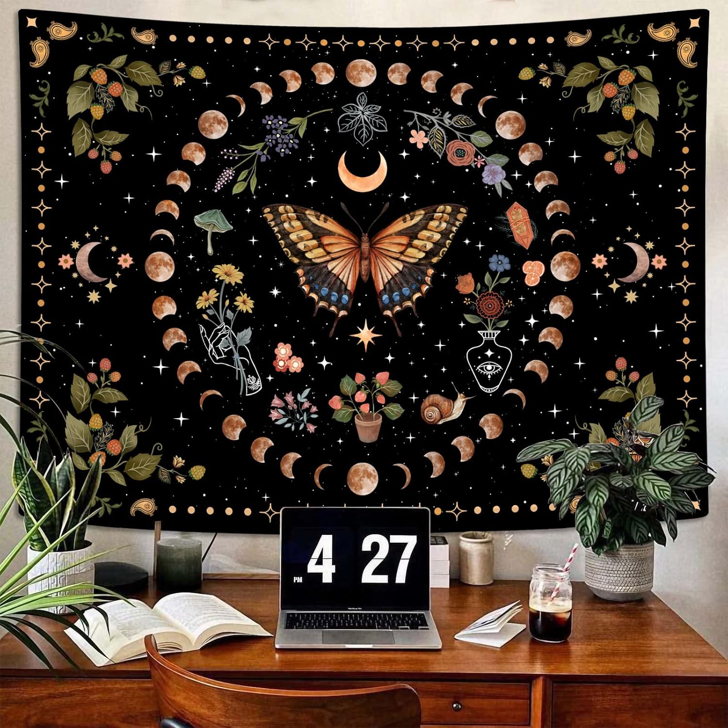 - 🎄【Service】: If you have any problem with thebutterfly moon flower tapestry, please customer service immediately, we will solve it for you. These aesthetic tapestries have three sizes, 48'' wide × 36'' high, 60'' wide × 44'' high, 80'' wide × 60'' high.