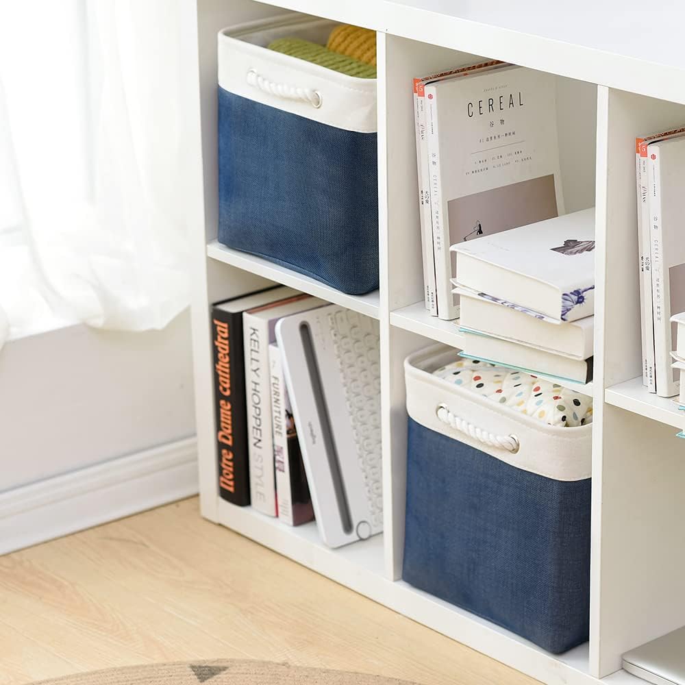 TcaFmac Organization and Storage Basket for Gifts Empty - 16x12x12 inch Large 2 Pack Collapsible Storage Bins for Shelves, Fabric Storage Cubes for Organizing Cloth Toy Kids (White & Jean Blue)