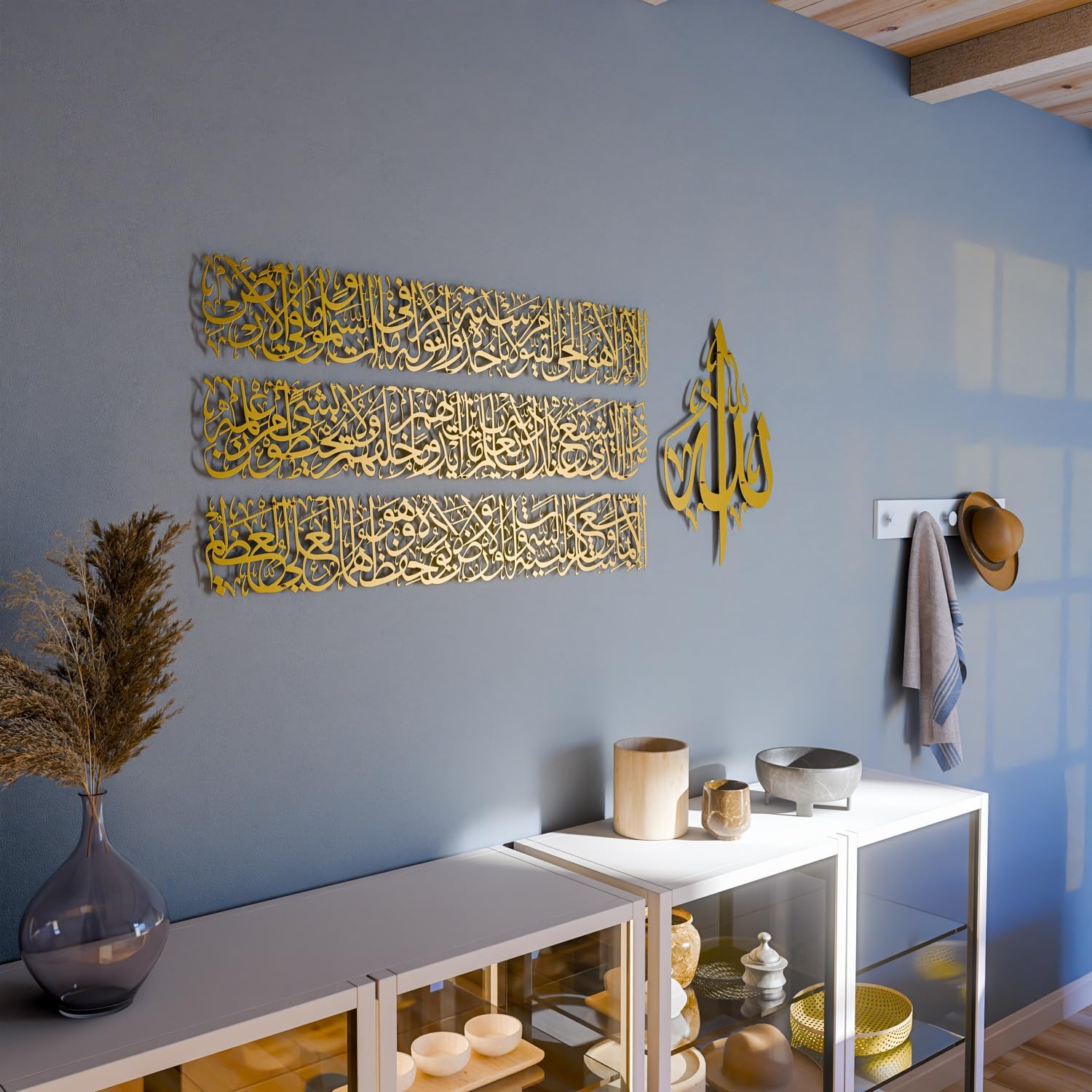 Modern Islamic Wall Art, Ayatul Kursi Metal Artwork, Perfect for Ramadan Decorations, Muslim Housewarming Gifts, Arabic Calligraphy Throne Verse Wall Decor, Ideal Eid Decor (Medium, Matte Gold)