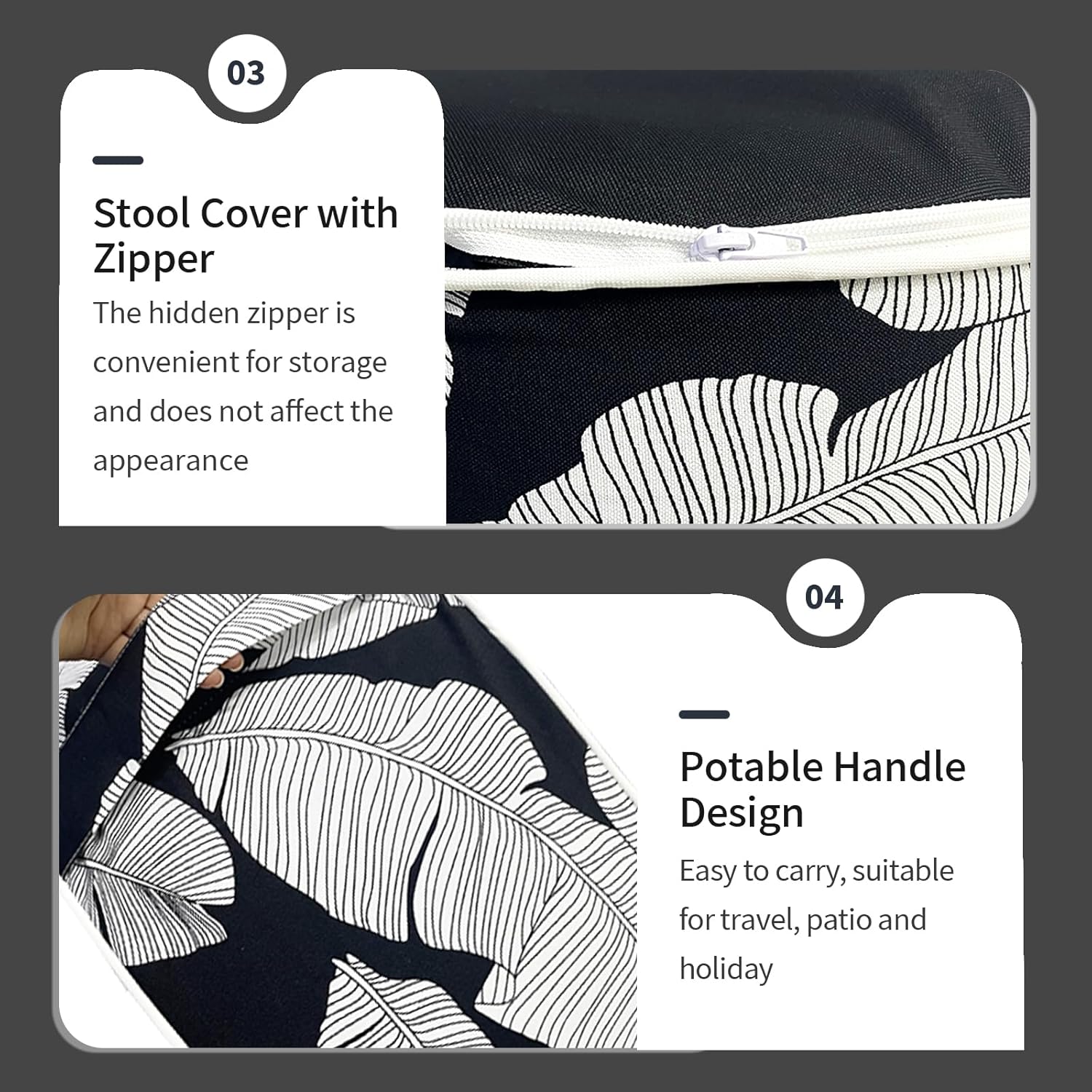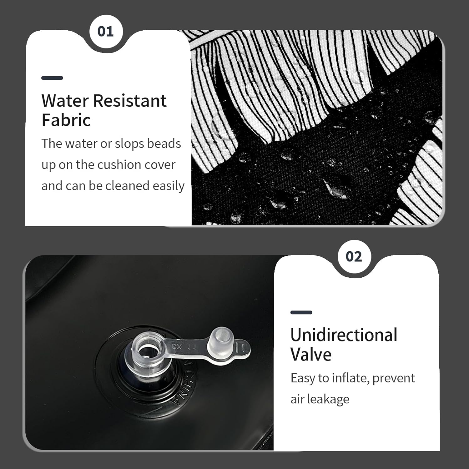 Inflatable Ottoman Stool D21 xH9 for Outdoor/Indoor Use, Water Repellent Patio Foot Rest Stool with Portable Handle,Round Pouf Ottoman Suitable for Garden,Deck and Camping - Black Leaves