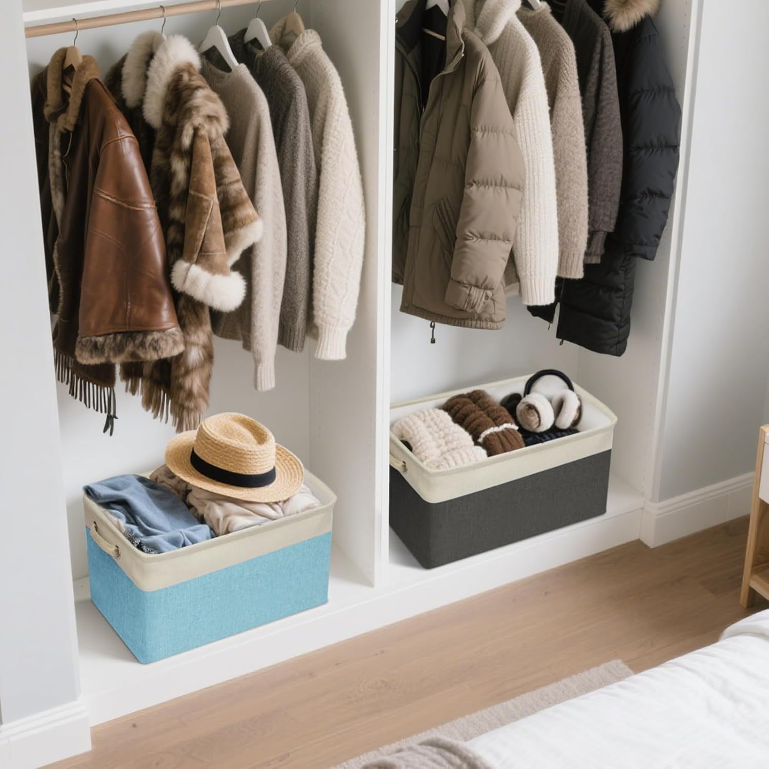 • [VERSATILE STORAGE] Measuring at 15"x11"x9.5", these fabric storage baskets are perfect for organizing a wide range of items, including clothes, books, and other household items. They are designed to fit perfectly on laundry organization and storage, in closets, or under beds, maximizing your storage space and keeping your home clutter-free