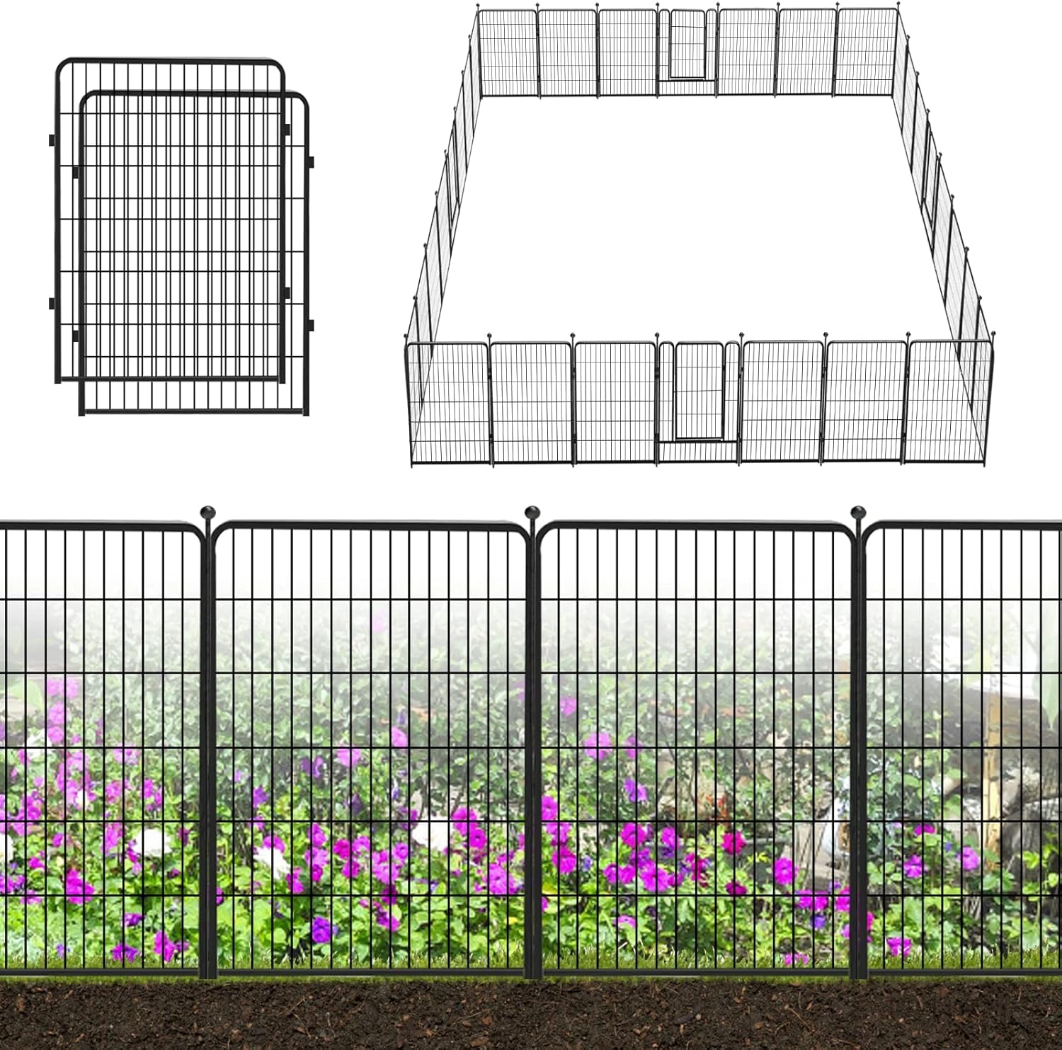 - Rust-proof & Sturdy Construction: Jhsomdr garden fence features double powder coated finish, rustproof, less maintenance, longer use. The metal fence panels are made of heavy duty iron and thick wire, no tearing, chewing, cracking and bending. The fence can work well for long time in bad weather