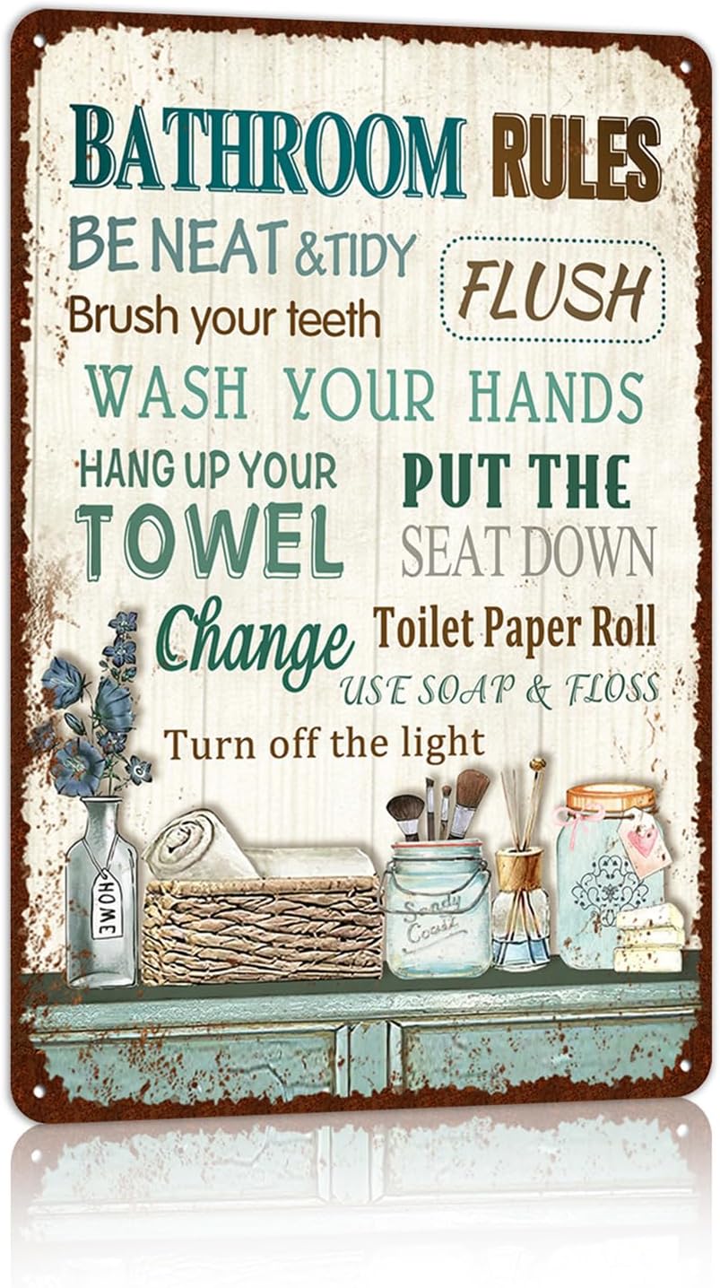 Vintage Farmhouse Bathroom Metal Tin Signs Rustic Flower Country Wall Art Decor 8X12 Inches